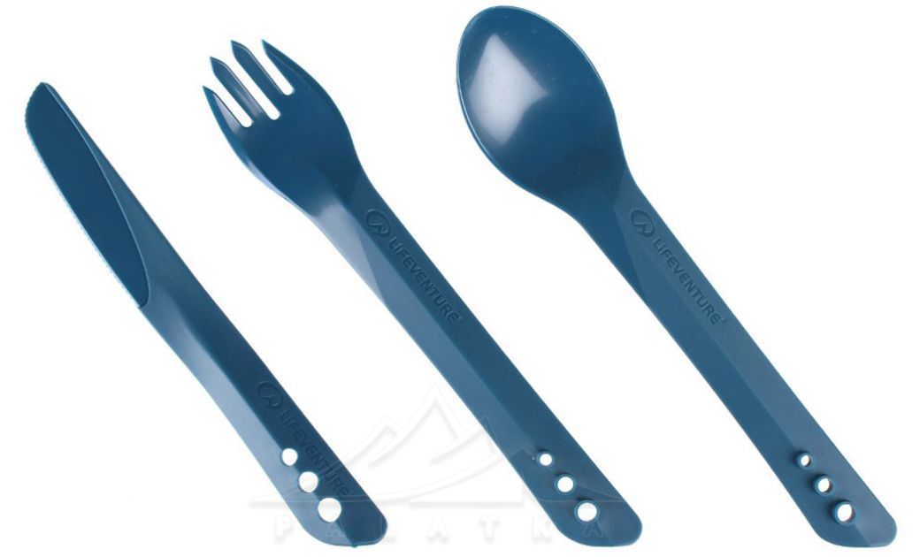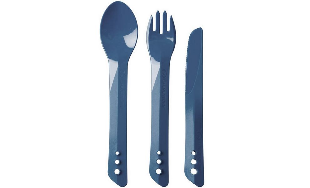 Lifeventure Ellipse Cutlery Set — універсальний набір столових приборів з міцного термостійкого пластику, що включає ложку, виделку, та ніж. Практичне доповнення для кемпінгової кухні, під час походів, та відпочинку на природі.