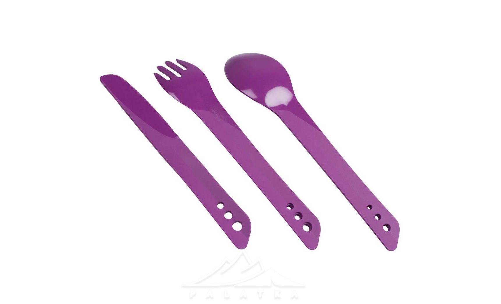 Lifeventure Ellipse Cutlery Set — універсальний набір столових приборів з міцного термостійкого пластику, що включає ложку, виделку, та ніж. Практичне доповнення для кемпінгової кухні, під час походів, та відпочинку на природі.