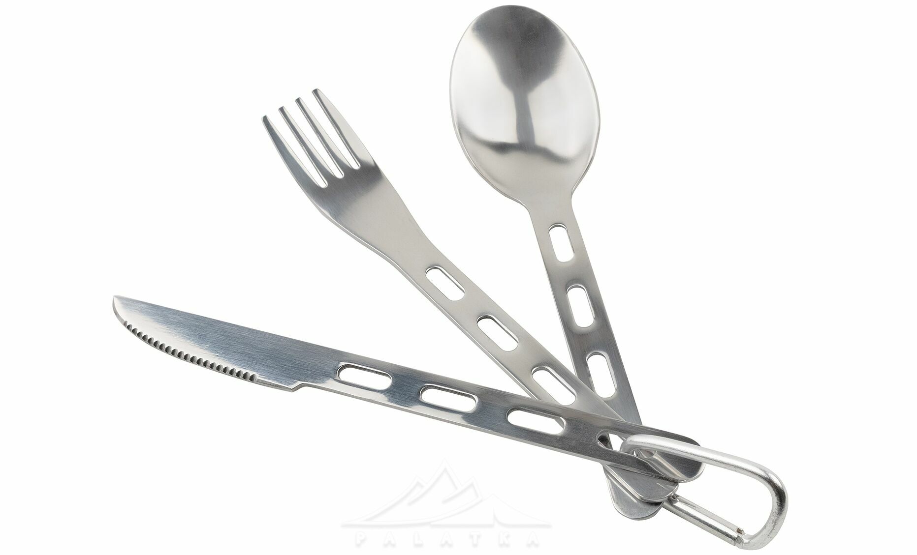 Tribe T-FC-0020 Hiker Set — практичний набір столових приборів для туристів і мандрівників. У комплект входять ложка, виделка та ніж, виготовлені з якісної харчової нержавіючої сталі SUS 304. Завдяки отворам у ручках і комплектному карабіну, прибори можна зручно з’єднувати між собою або підвішувати для просушки. Ідеальне рішення для походів, кемпінгу, виїздів на природу та активного відпочинку. Цей набір — надійний супутник кожного хайкера, який цінує функціональність, компактність і простоту.