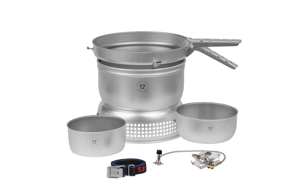 Набір посуду Trangia + газовий пальник 25-21 UL/D/GB — розрахований на 3-4 людини та має все потрібне для приготування та вживання їжі в польових умовах під час кемпінгу, риболовлі та туристичних походів.