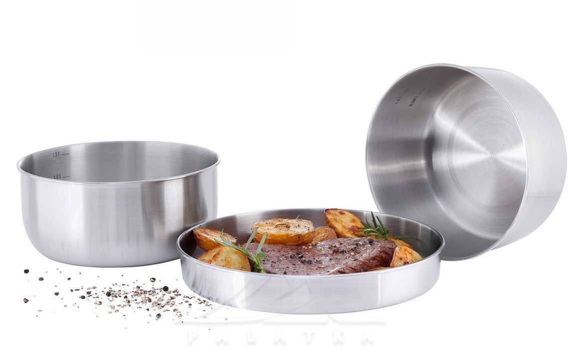 Tatonka Multi Pot Set — набір посуду з нержавіючої сталі для приготування їжі в похідних умовах. Розрахований на дві-три особи.