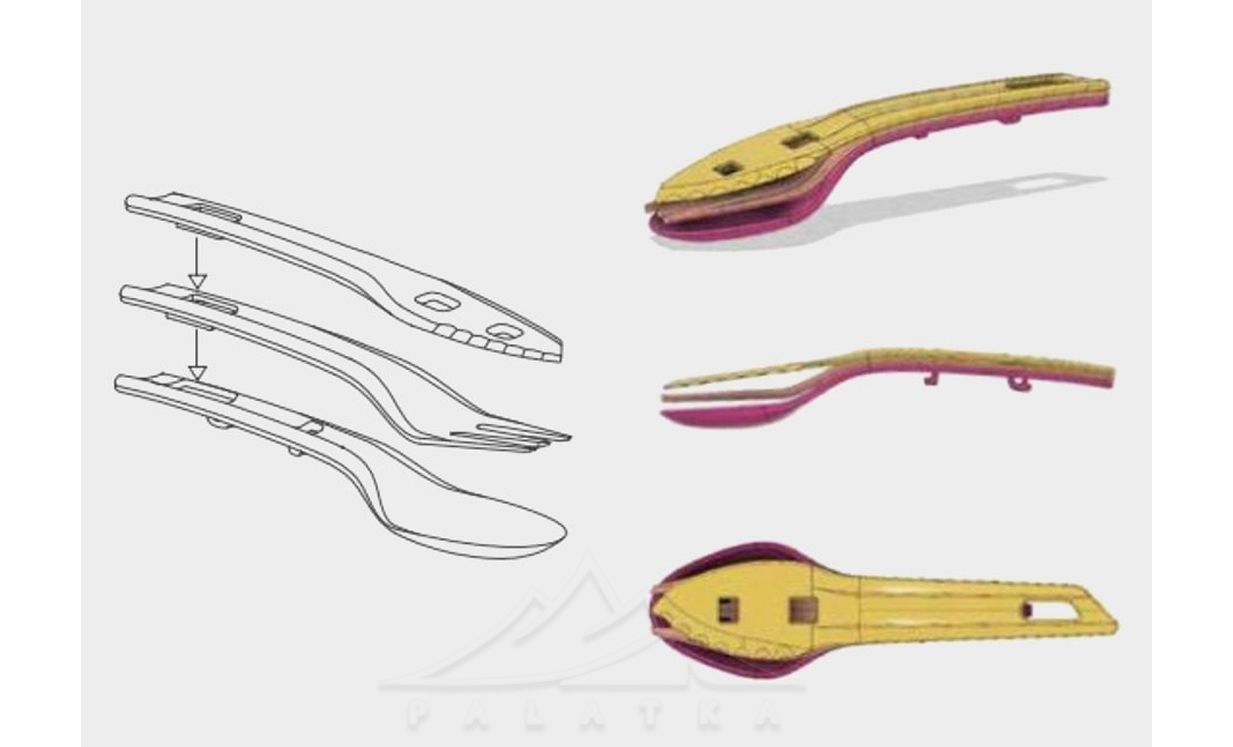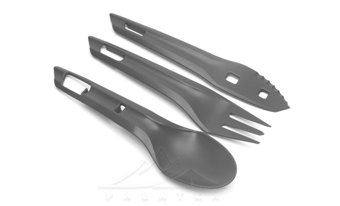 Набір столових приборів Wildo OCYs — компактний набір столових приборів з пластику, що включає три предмети з отворами на ручках, що дозволяють з'єднати їх разом. Виготовлений з якiсних матеріалів та безпечний для використання. Універсальне доповнення до вашого туристичного набору для вживання їжі.