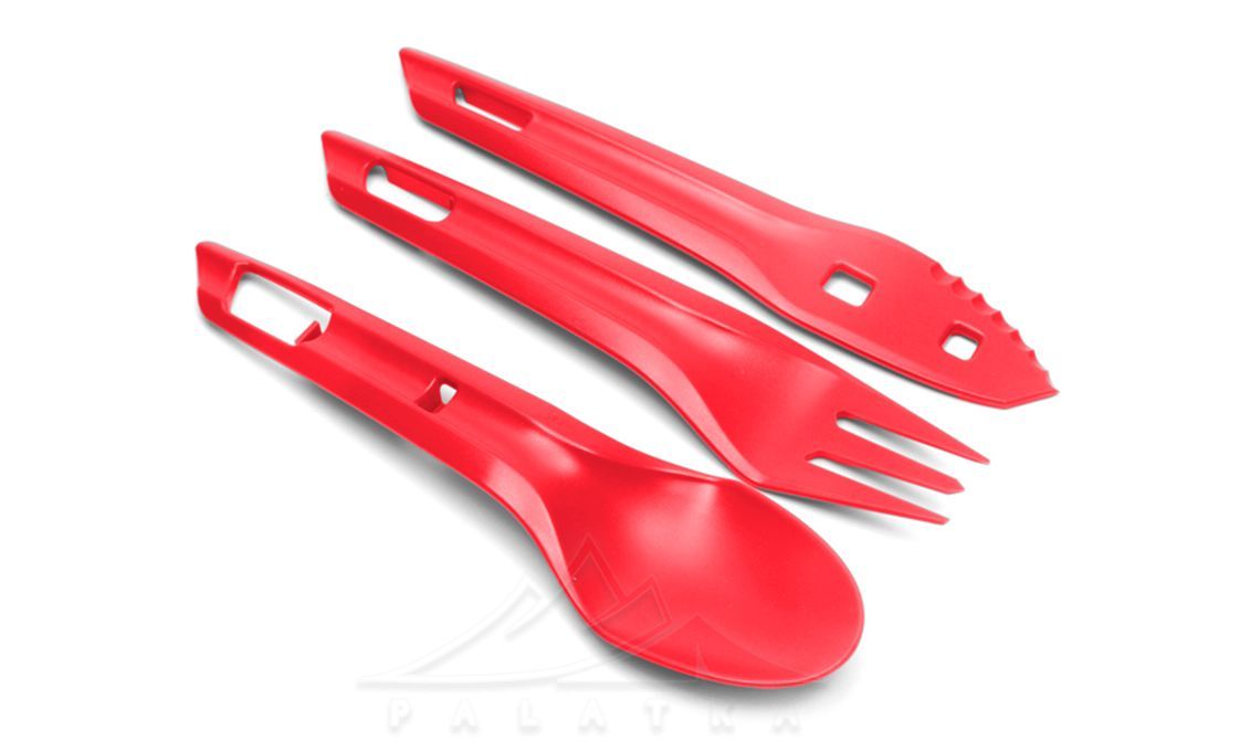 Набір столових приборів Wildo OCYs — компактний набір столових приборів з пластику, що включає три предмети з отворами на ручках, що дозволяють з'єднати їх разом. Виготовлений з якiсних матеріалів та безпечний для використання. Універсальне доповнення до вашого туристичного набору для вживання їжі.