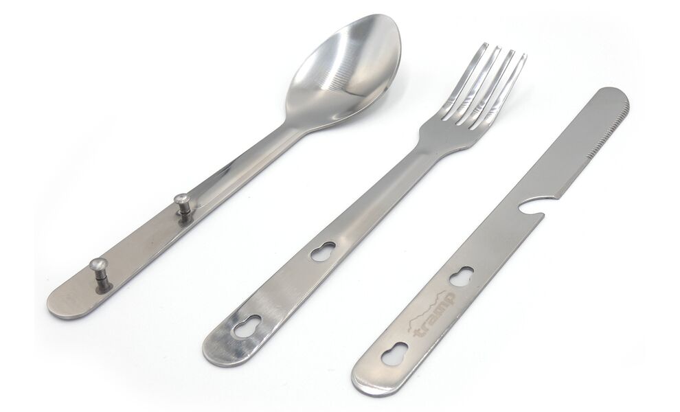 Набір столових приборів Tramp UTRC-003 — набір столових приборів з трьох предметів, виготовлений з нержавіючої сталі. Універсальне доповнення для вашої кемпінгової кухні та відпочинку на природі.
