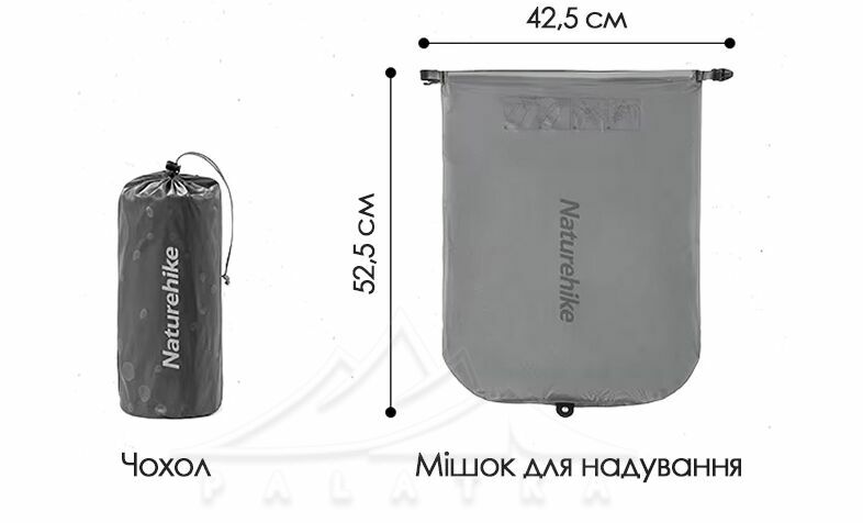 Надувний килимок Naturehike CNH22DZ018 — легкий та компактний килимок, який чудово підійде для організації спального місця в походах, під час подорожей чи відпочинку на природі.