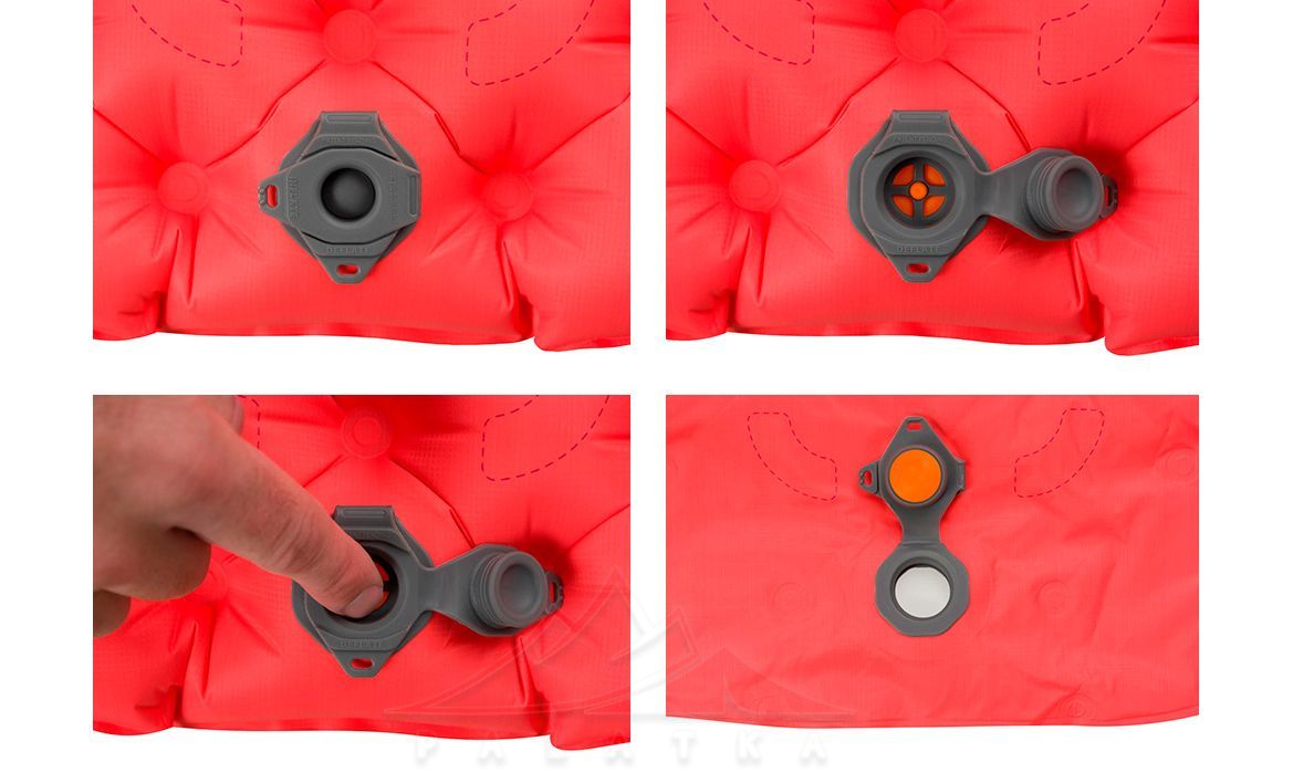 - За допомогою клапану (натискаючи на нього) можна відрегулювати жорсткість килимку під себе.