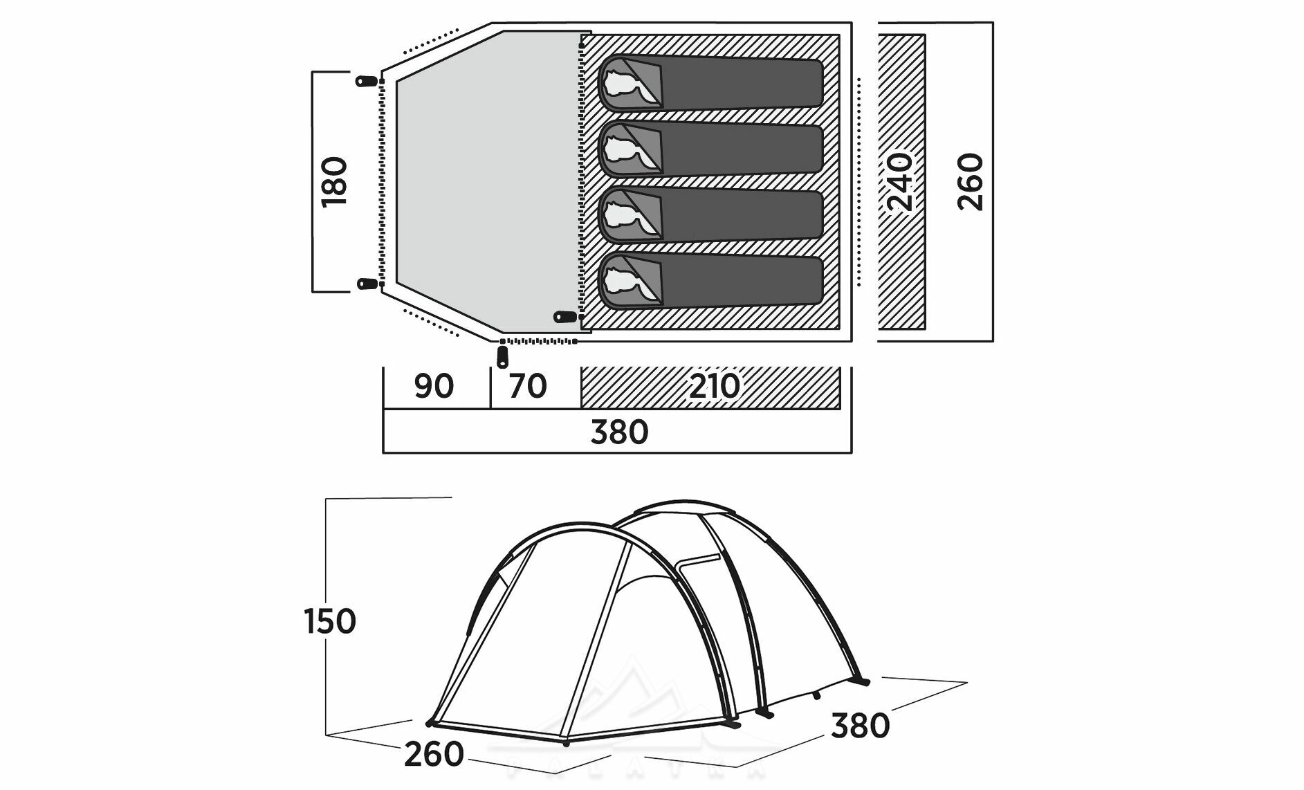 - можна встановити зовнішній тент без внутрішнього намету