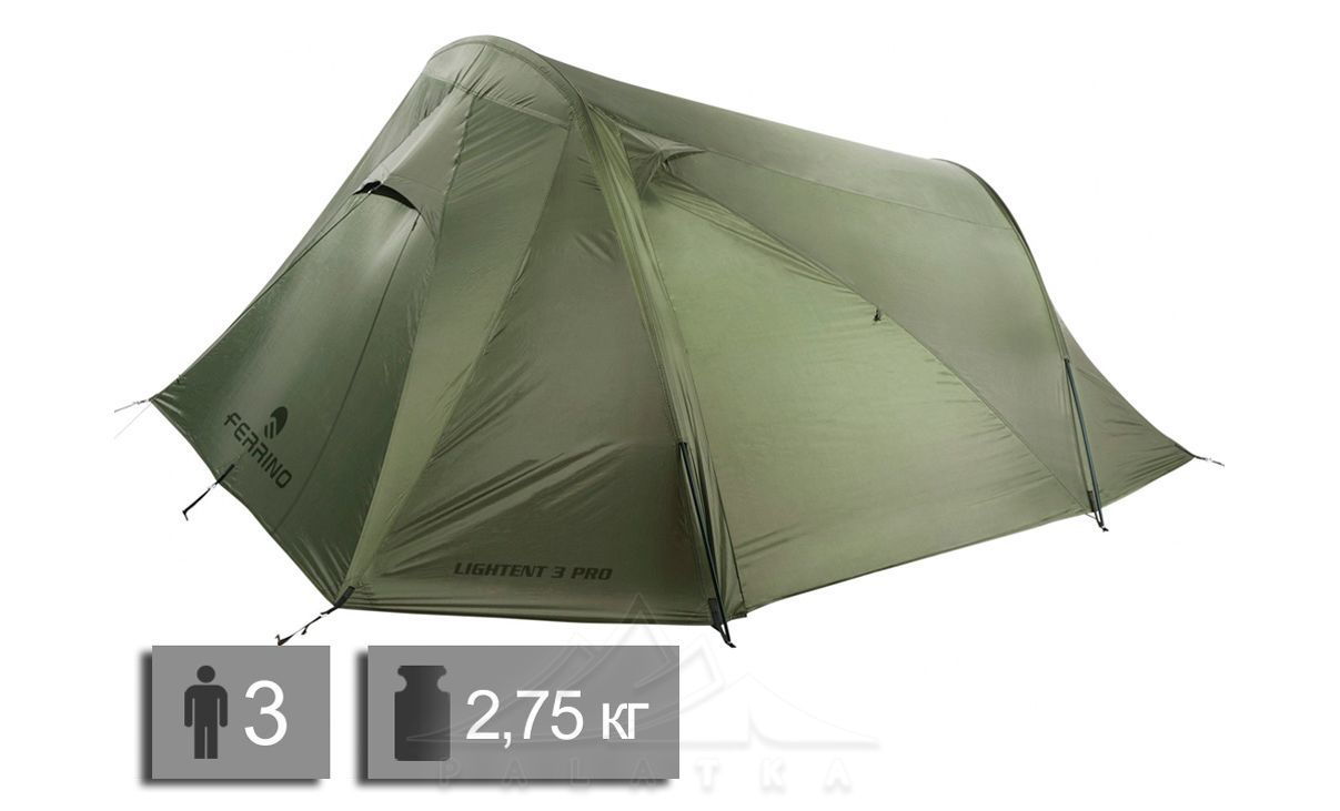 Намет Ferrino Lightent 3 Pro — ультралегкий 3-місний намет для туристичних походів та мандрівок. Двошаровий, тунельний. Компактні розміри та легка вага. Для 3-сезонного використання.