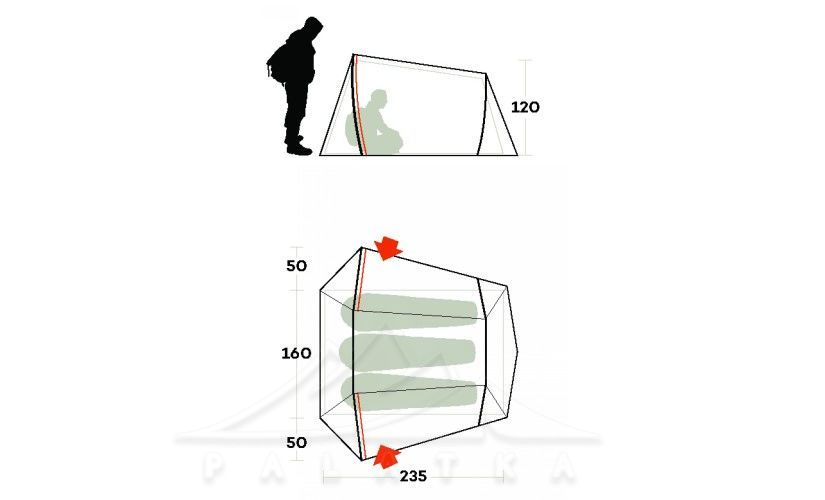 - Внутрішній намет (спальня) повністю з москітної сітки для полегшення ваги, більшої компактності та найкращої вентиляції.