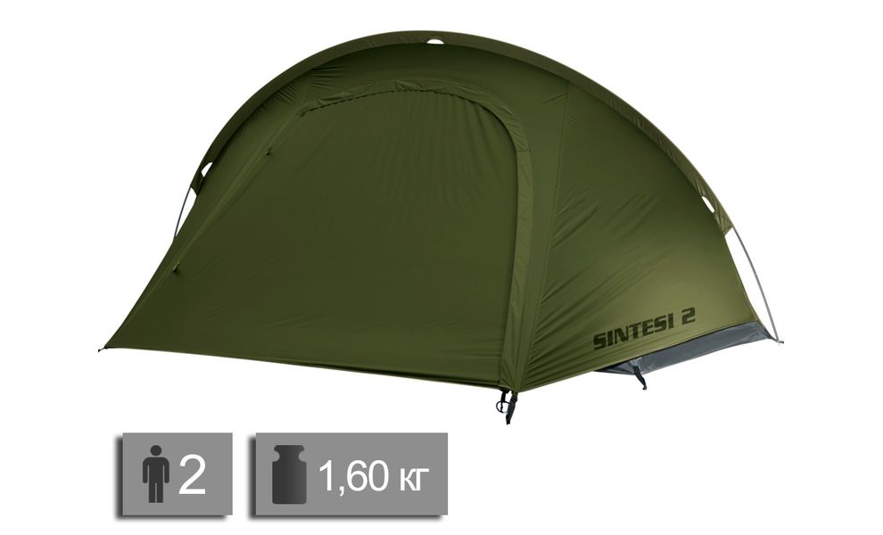 Намет Ferrino Sintesi 2 — ультралегкий 2-місний одношаровий намет для туристичних походів та мандрівок. Компактні розміри та легка вага. Для 3-сезонного використання.