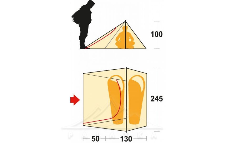 - Боковий вхід до намету, двері на блискавці, дублюються москітними сітками.