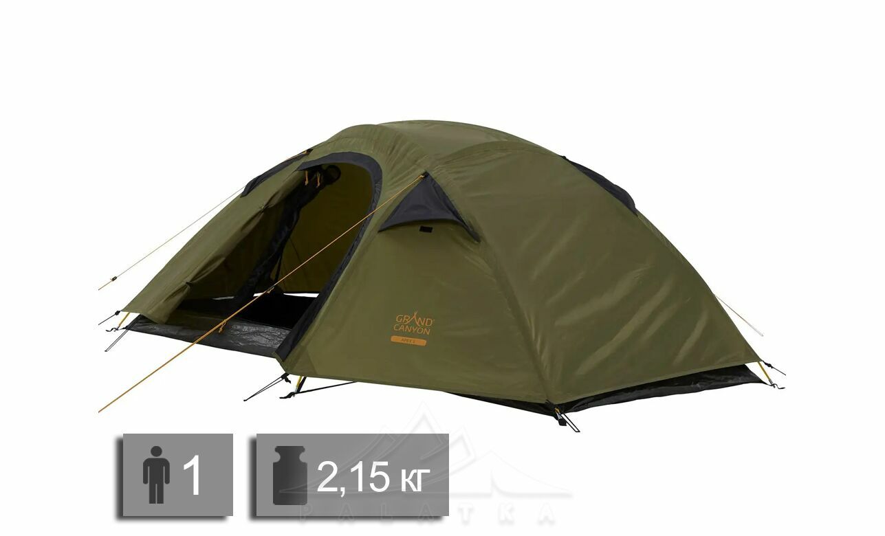 Намет Grand Canyon Apex 1 Alu — 1-місний намет, який чудово підійде для соло походів чи відпочинку на природі. Конструкція намету робить його надзвичайно стійким до вітрових навантажень. Використання в каркасі третьої дуги дозволяє збільшити внутрішній простір тамбуру і намету. Намет може бути встановлений на будь-якій місцевості і не потребує обов'язкової фіксації розтяжками. Внутрішній сітчастий намет можна використовувати оремо від зовнішнього в літні спекотні ночі.