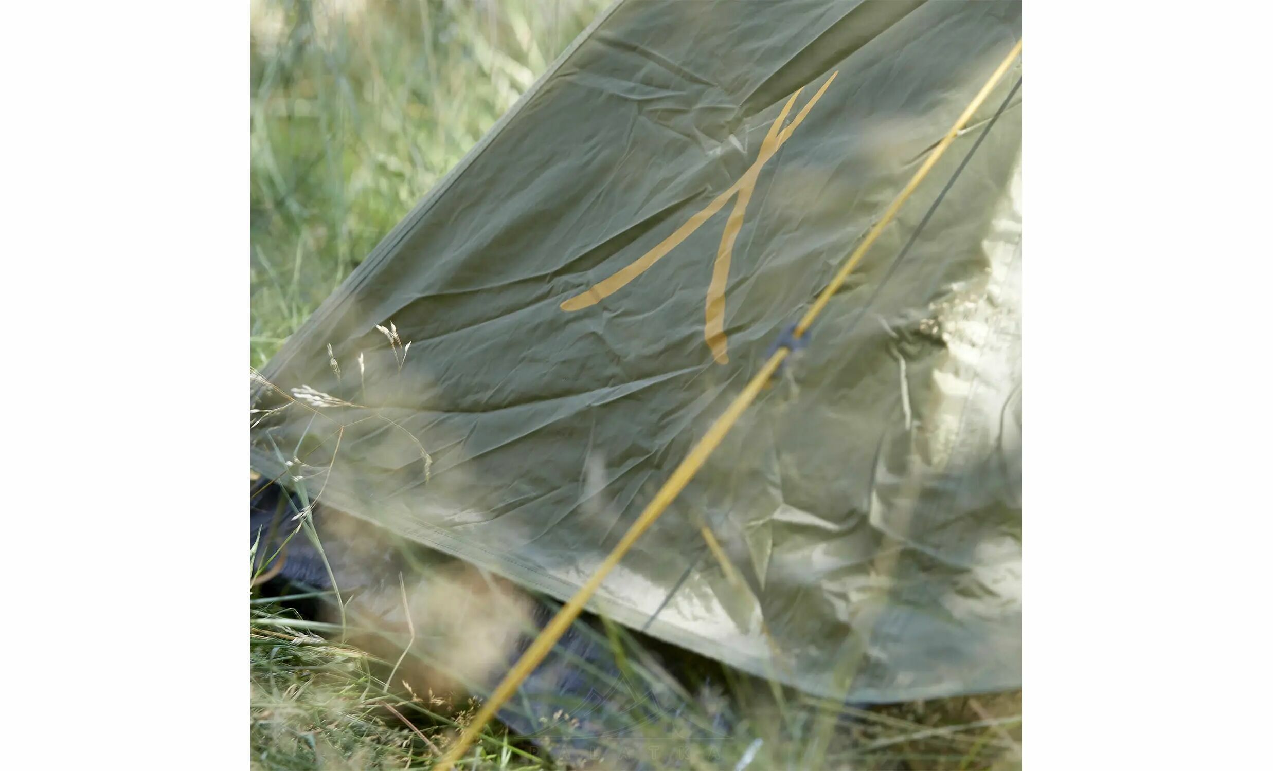 - Відтяжки намету мають жовто-помаранчевий колір і вплетену відбиваючу нитку, завдяки чому вони лишаються добре помітними в світлий час доби, і темний час доби в світлі ліхтарика.
