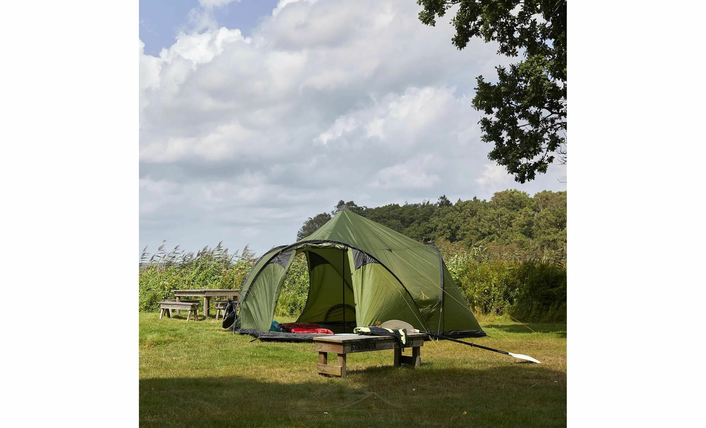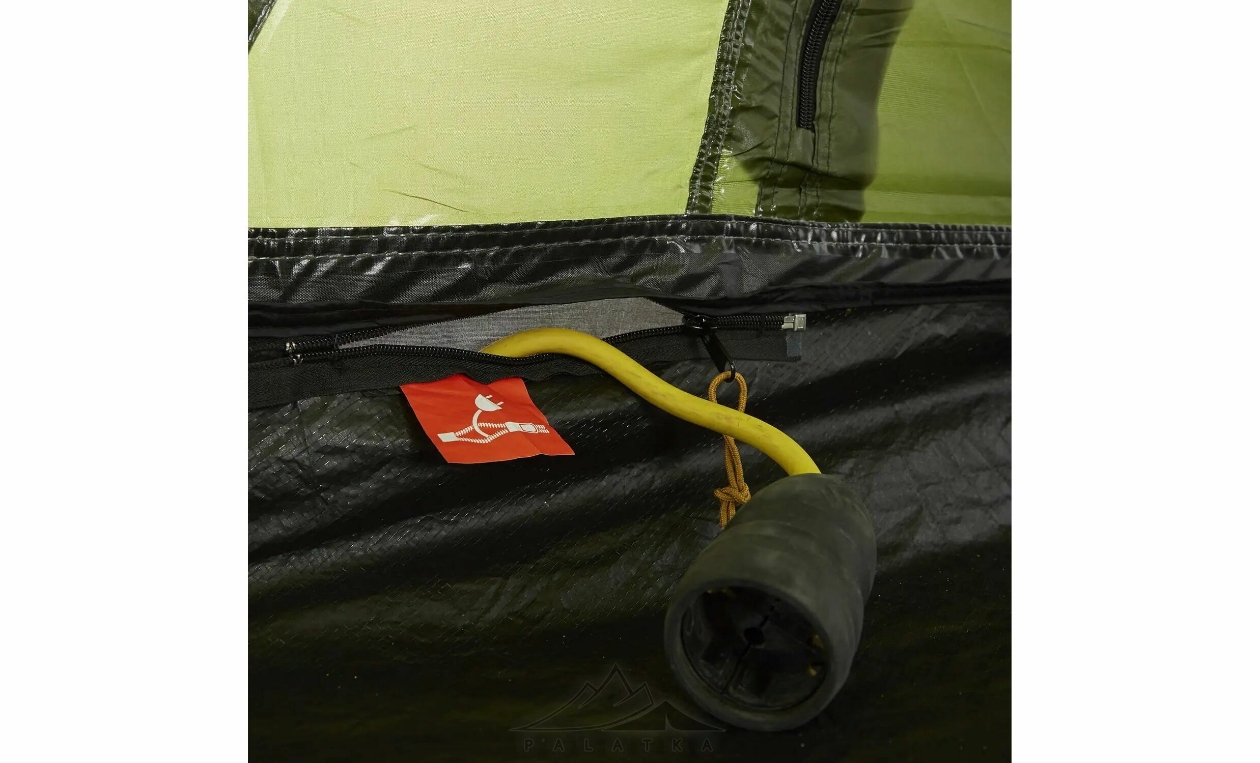 Підлога намету з'єднана із зовнішнім тентом, що виключає потрапляння вологи та комах всередину намету. З трьох сторін намет має великі вентиляційні клапани з москітними сітками, а також цілих шість вентиляційних клапанів вгорі, завдяки чому в наметі відмінна вентиляція повітря і відсутність конденсату. Поліуретанове просочення зовнішнього шару та проклеєні шви забезпечують водостійкість 3000 мм водяного стовпа, що дозволяє не боятись проникнення вологи навіть під час затяжних опадів.