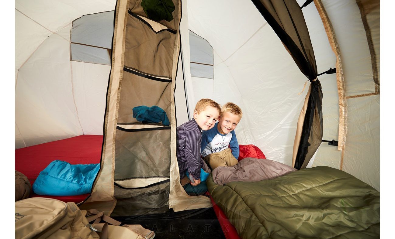 - Кемпінгова логіка "все під дахом" — поєднання великого тамбура, вшитої підлоги та вікон робить цей намет особливо зручним саме для тривалого відпочинку на одному місці.