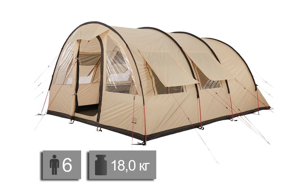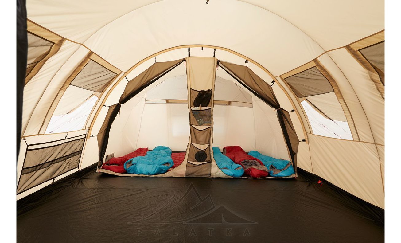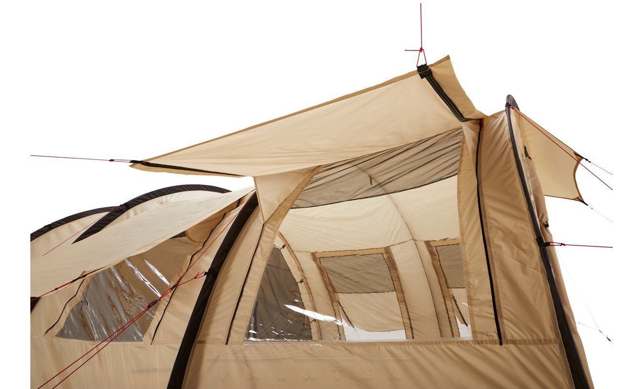 - Кемпінгова логіка "все під дахом" — поєднання великого тамбура, вшитої підлоги та вікон робить цей намет особливо зручним саме для тривалого відпочинку на одному місці.