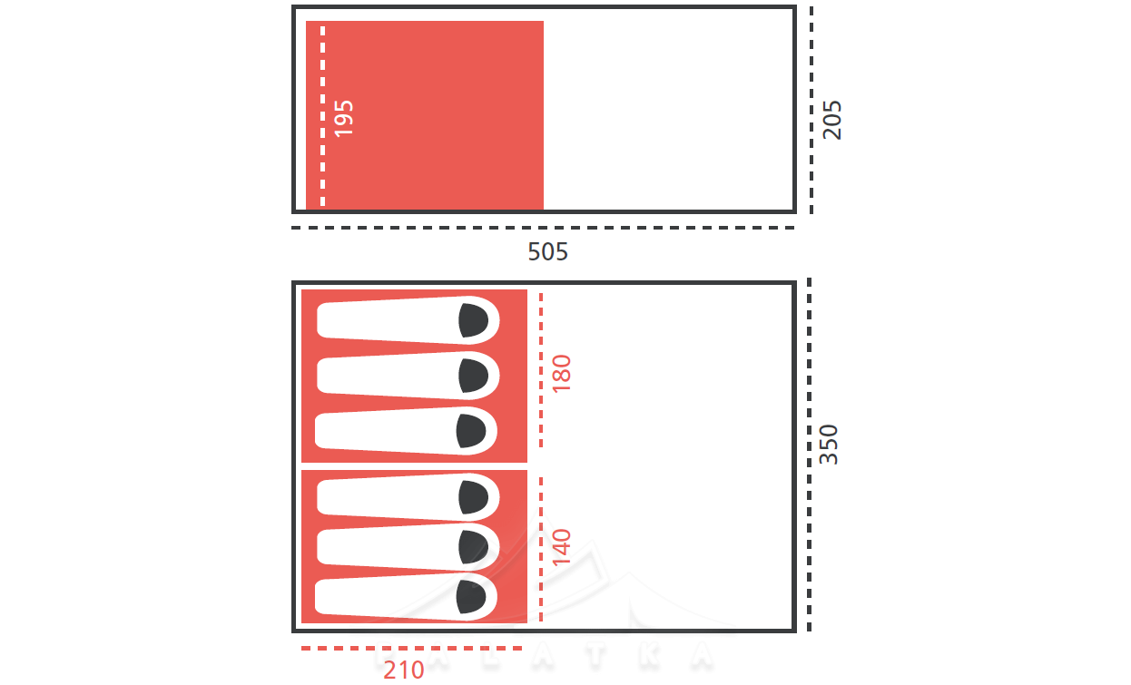 - Спальня з 2 входами — зручніше для двох/трьох людей: не треба перелазити, легше організувати "свій" бік.