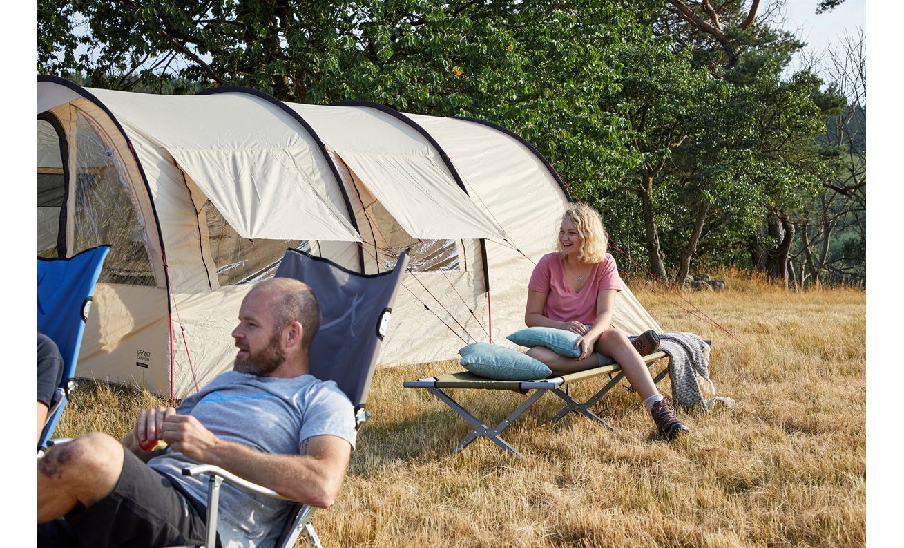 Намет Grand Canyon Helena 6 — це кемпінговий "будиночок" для тих, хто любить виїхати на природу на кілька днів і хоче мати не тільки спальню, а й повноцінний спільний простір під дахом: під кухню, стіл, речі й вечірні посиденьки в негоду. Його сильна сторона — величезний тамбур-вітальня та практичне встановлення із зовнішнім каркасом, яке добре працює саме в кемпінгу.