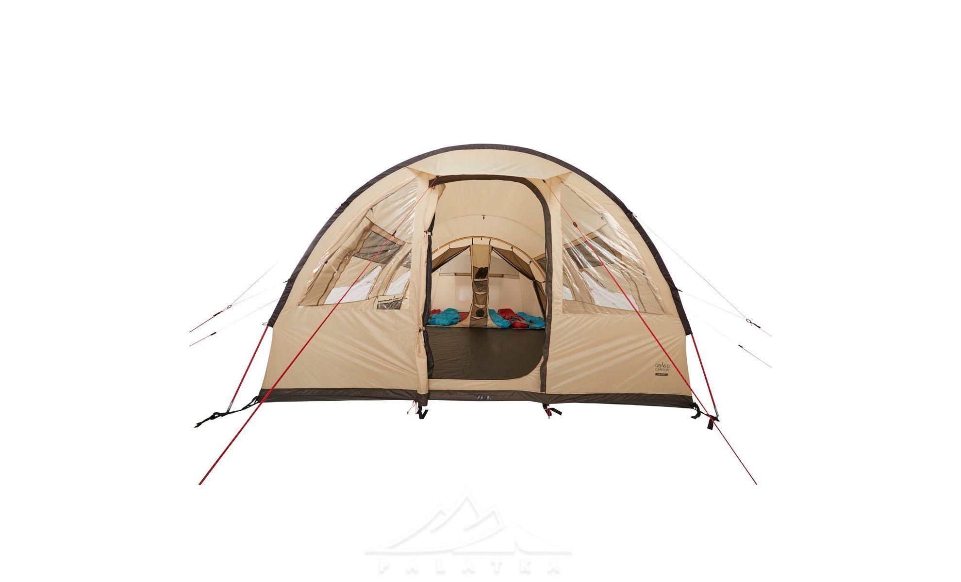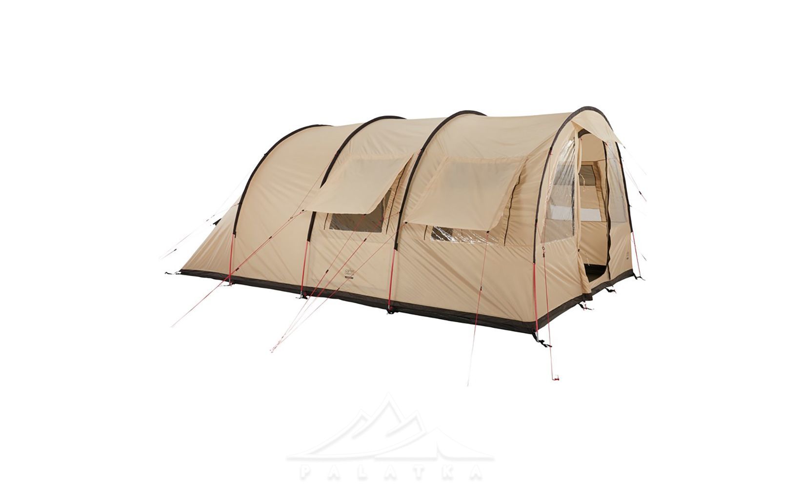 - Тунельна конструкція: дає дуже ефективний внутрішній об’єм (стіни ближчі до вертикальних), тому в наметі значно комфортніше знаходитися тривалий час, більше корисного простору.