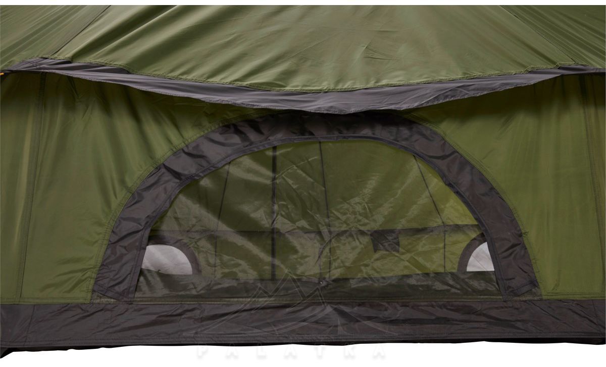 Підлога намету з'єднана із зовнішнім тентом, що виключає потрапляння вологи та комах всередину намету. З трьох сторін намет має великі вентиляційні клапани з москітними сітками, а аткож три вентиляційних клапани вгорі, завдяки чому в наметі відмінна вентиляція повітря і відсутність конденсату. Широкі вхідні двері сформовані металевим каркасом та оснащені москітною сіткою. Поліуретанове просочення зовнішнього шару та проклеєні шви забезпечують водостійкість 3000 мм водяного стовпа, що дозволяє не боятись проникнення вологи навіть під час затяжних опадів.