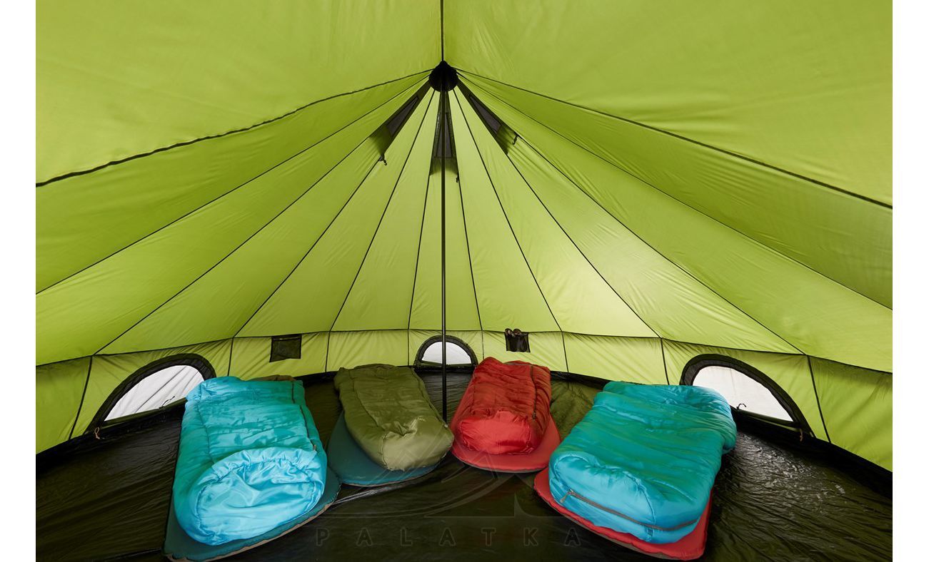 Форма намету дозволяє розмістити в ньому вісім людей для ночівлі вздовж, впоперек, або радіально - так як це буде зручно. А вдень для спілкування в наметі може укритись від негоди або пекучого сонця велика компанія з 10 і більше людей. Маючи у вищій точці 3 метри висоти і вертикальні бічні стіни, цей намет дає змогу переміщатись всередині в повний зріст по більшій частині його внутрішнього простору.