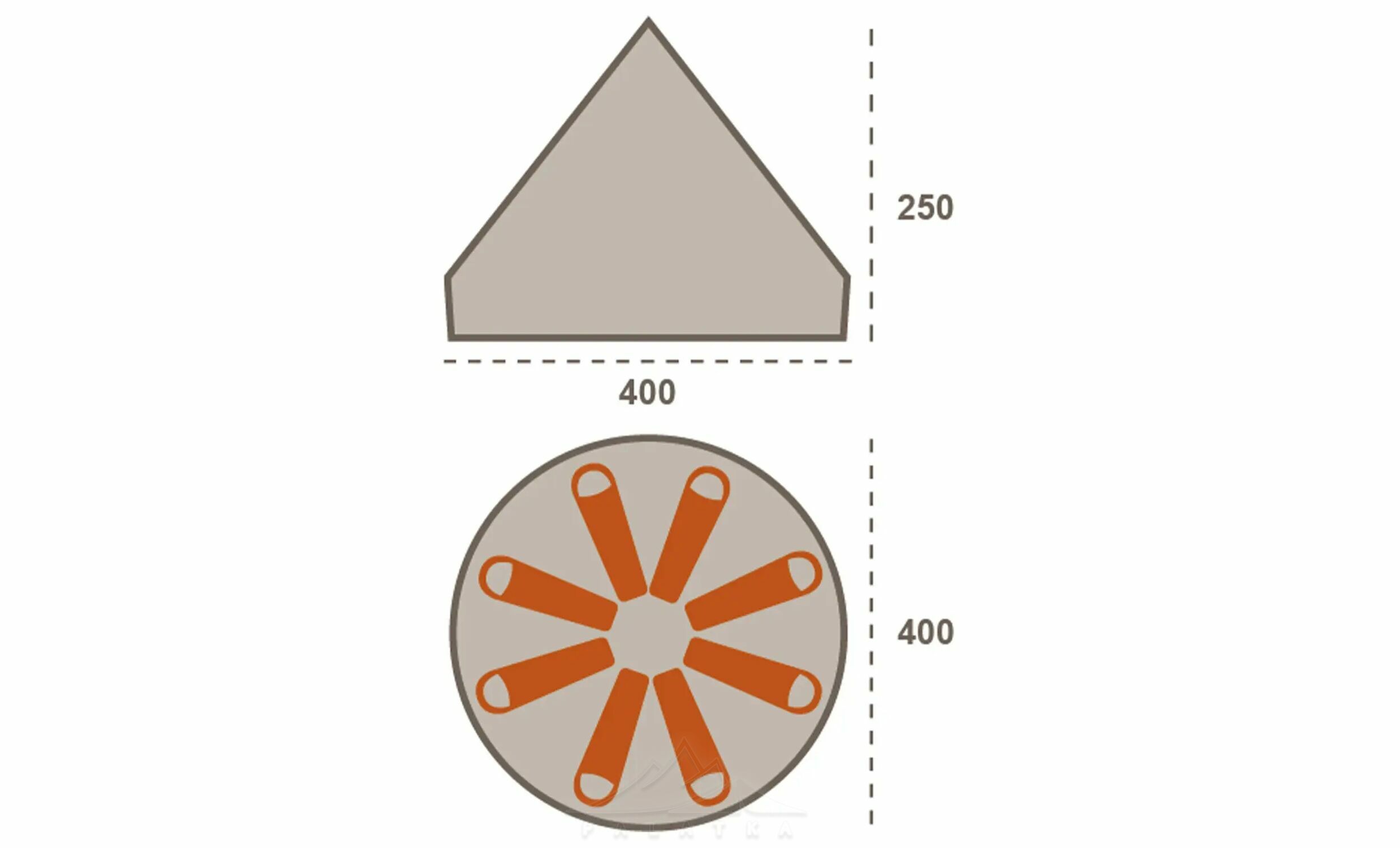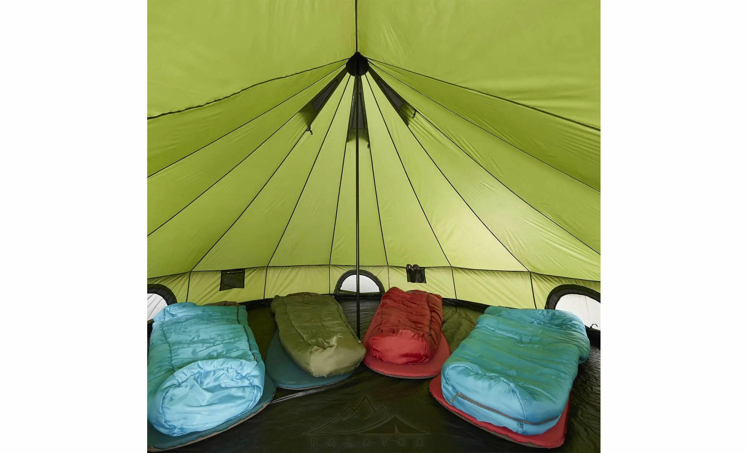 Форма намету дозволяє розмістити в ньому вісім людей для ночівлі вздовж, впоперек, або радіально - так як це буде зручно. А вдень для спілкування в наметі може укритись від негоди або пекучого сонця велика компанія з 8 і більше людей. Маючи у вищій точці 2.5 метри висоти і вертикальні бічні стіни, цей намет дає змогу переміщатись всередині в повний зріст по більшій частині його внутрішнього простору.