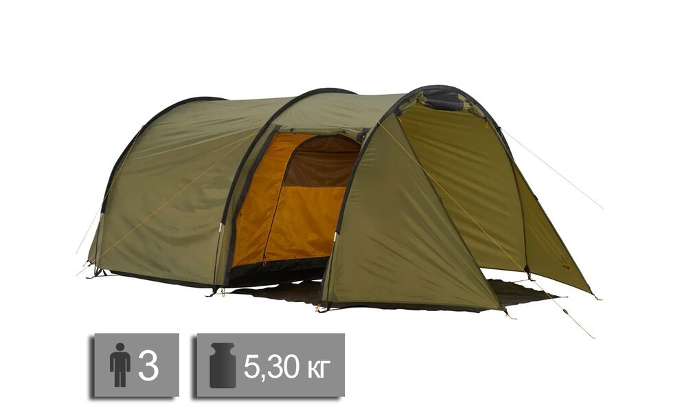 Grand Canyon Robson 3 Alu — універсальний намет для тих, кому в поході або на лайт-кемпінгу критично важливий простір: щоб комфортно спати втрьох і мати великий сухий тамбур для спорядження. Ця модель — чудовий варіант для велоподорожей та сплавів/каное, де потрібна місткість і добра стійкість до вітру вздовж довгої сторони.
