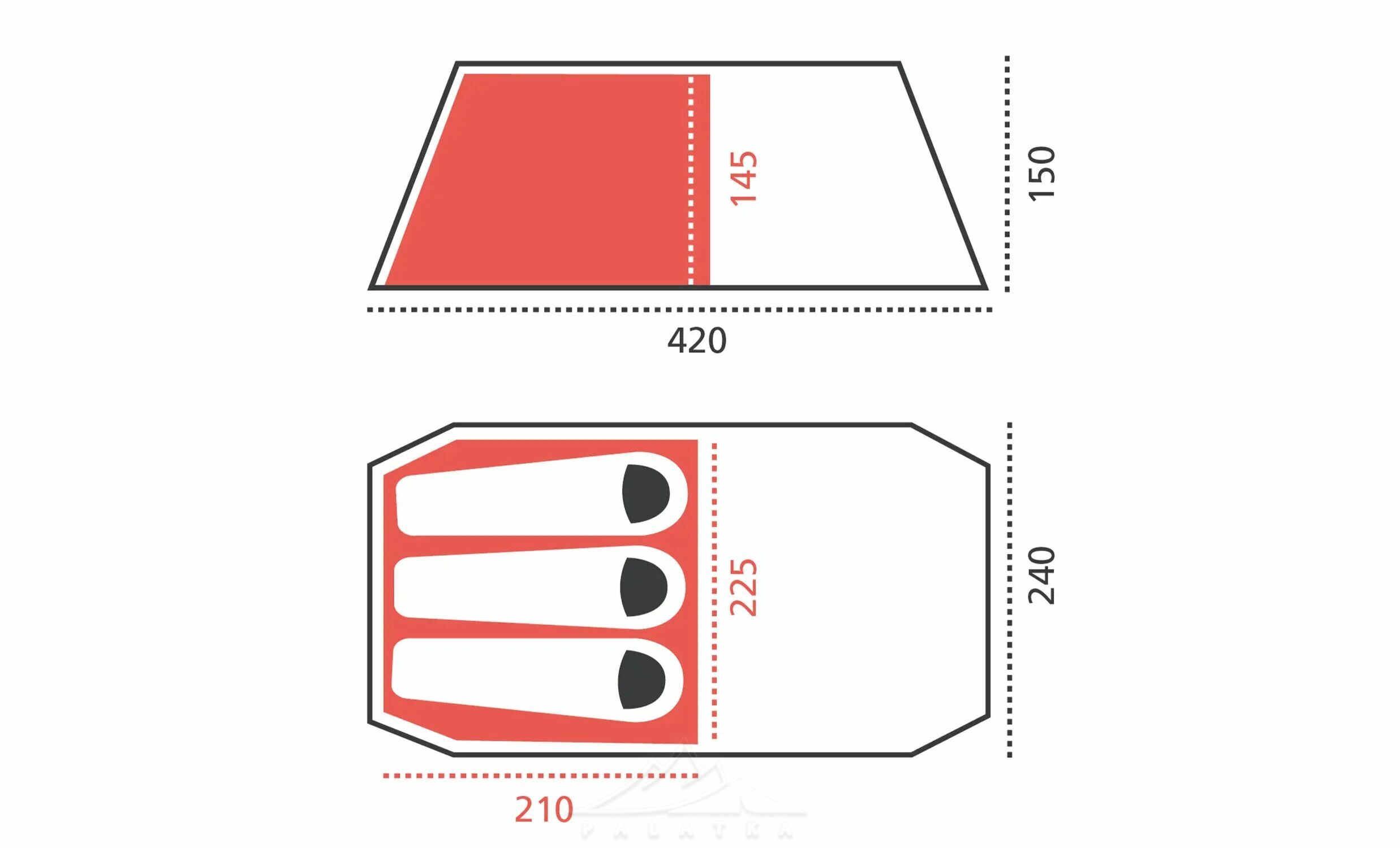 - можна встановити зовнішній тент без внутрішнього намету