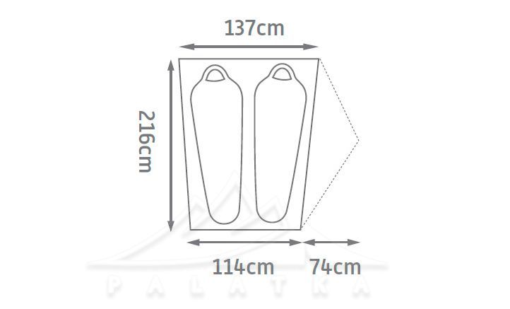 - Зовнішній тент з поліестеру, водостійкістю 1 800 мм H2O.