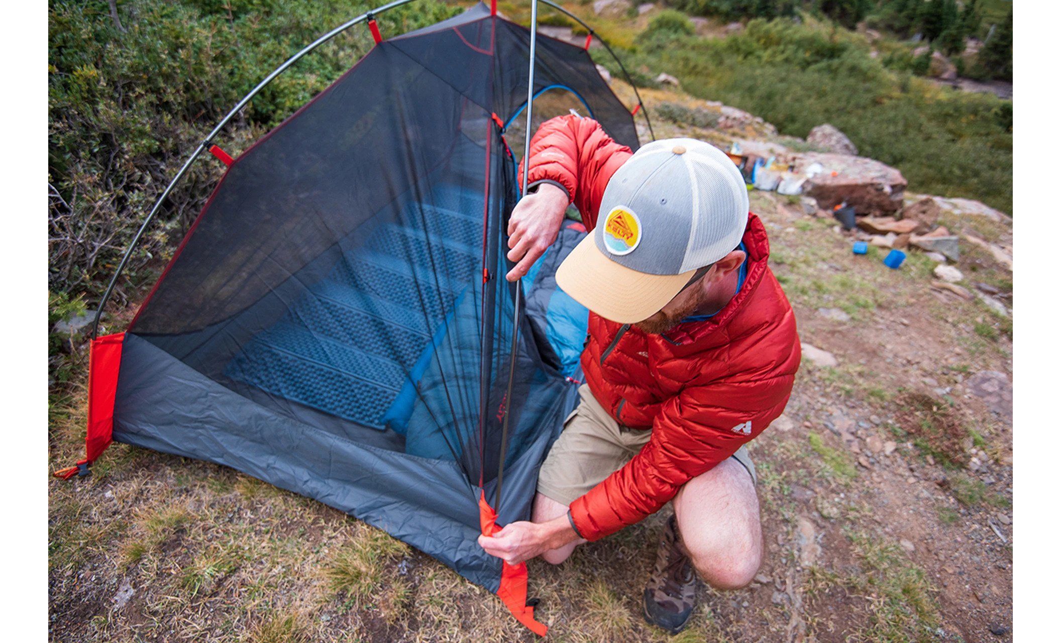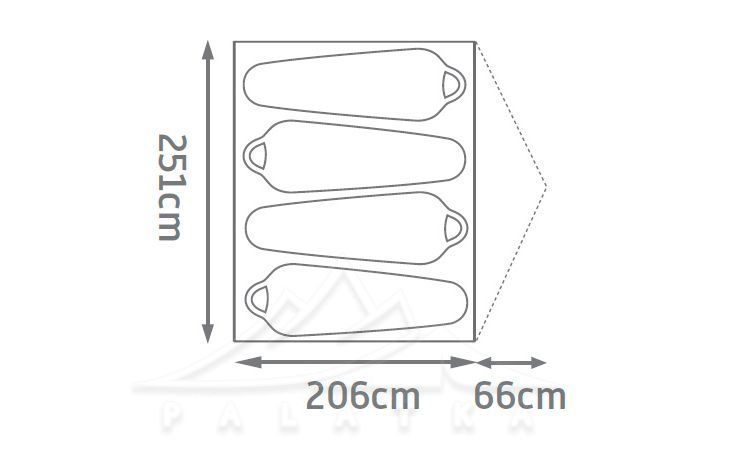 - Зовнішній тент з поліестеру, водостійкістю 1 800 мм H2O.