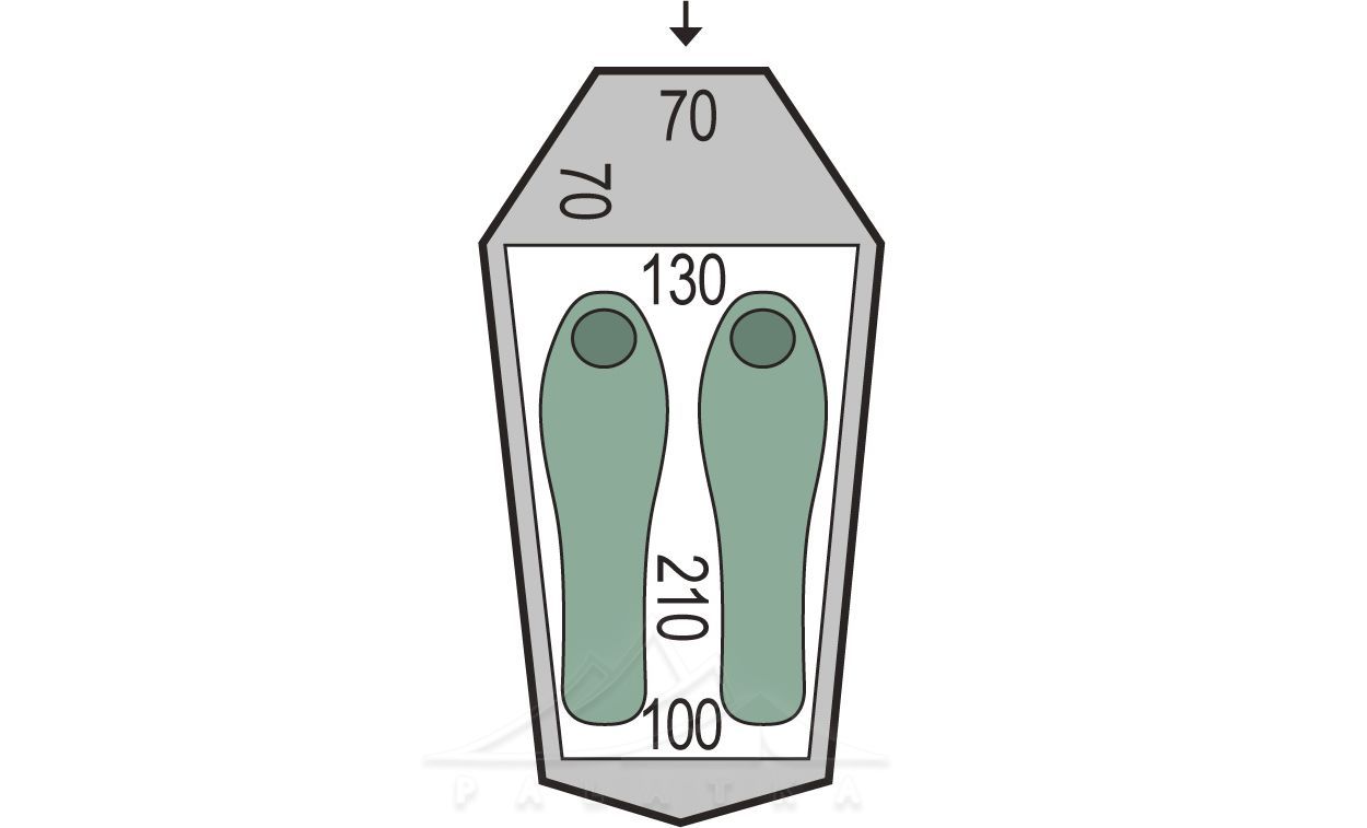 - Зовнішній тент з посиленого нейлону з PU-просоченням та силіконізацією, водостійкістю 4 000 мм H2O.