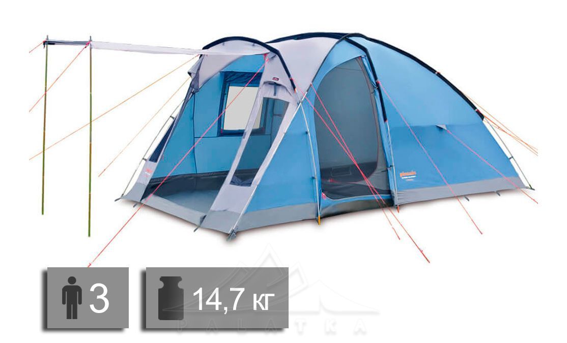 Намет Pinguin Nimbus 3 — 3-місний кемпінговий намет для комфортного довготривалого відпочинку на природі. Має просторий високий тамбур, 1 спальню, багато вентиляційних вікон. Можна використовувати 4 сезони.