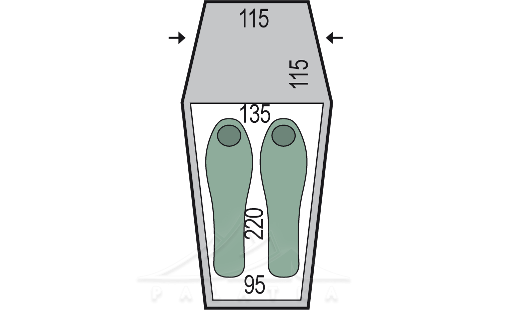 - Зовнішній тент з поліестеру з PU-просоченням, водостійкістю 4 000 мм H2O.