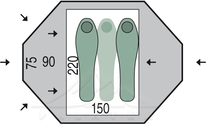 - Спальня має 2 великих D-подібних входи на блискавці з 2-ма бігунками та віконцями з москітної сітки (зі шторкою).