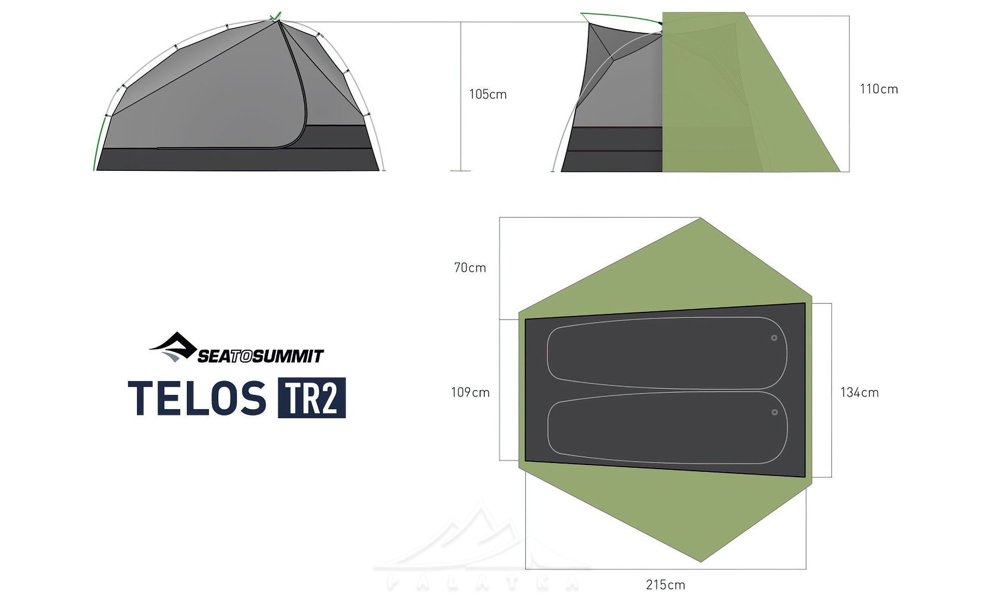 Sea to Summit Telos TR2 — ультралегкий намет для пари (або соло-мандрівника з запасом простору), яка ходить у походи або займається велотуризмом і хоче суперлегку двійку з «дорослим» комфортом: широкі двері, два тамбури, продумана вентиляція та можливість підлаштовувати конфігурацію під погоду. Це варіант для тих, кому важливі зручність життя в таборі + мінімальна вага без компромісів по функціоналу.