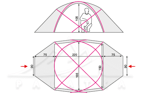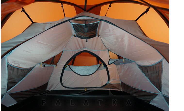 - Зовнішній тент з посиленого нейлону з PU-просоченням та силіконізацією, водостійкістю 6 000 мм H2O.