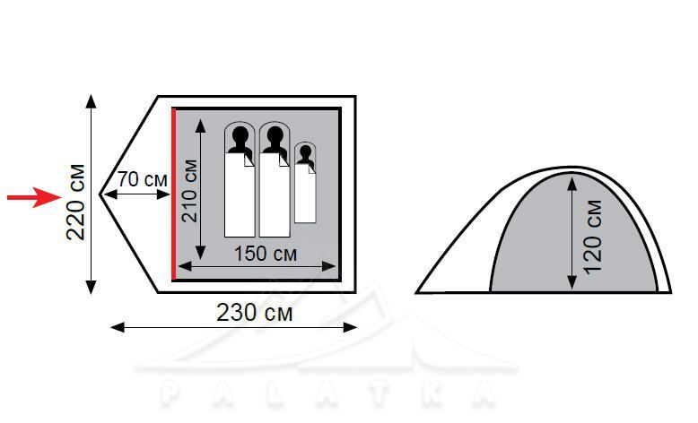 - Спальна має один D-подібний вхід, на блискавці. Двері дублюються москітною сіткою.