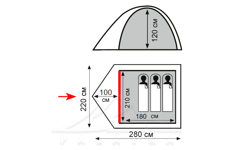 - Підлога спальні зі щільного поліетилену (армований тарпаулінг), водостійкістю 10 000 мм H2O.