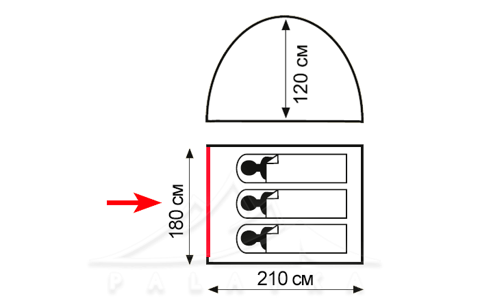 - Має один Т-подібний вхід, на блискавці. Двері дублюються москітною сіткою.