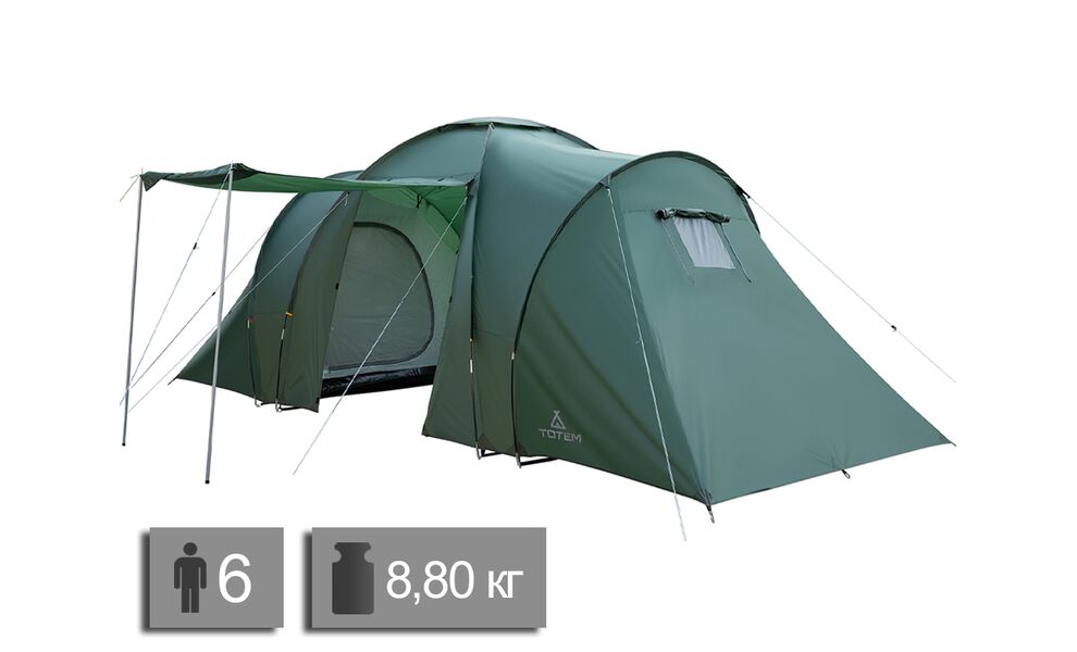 Намет Totem UTTT-035 Hurone 6 v2 — недорогий кемпінговий намет для 6 чоловік. Має 2 роздільні спальні, високий та великий тамбур.