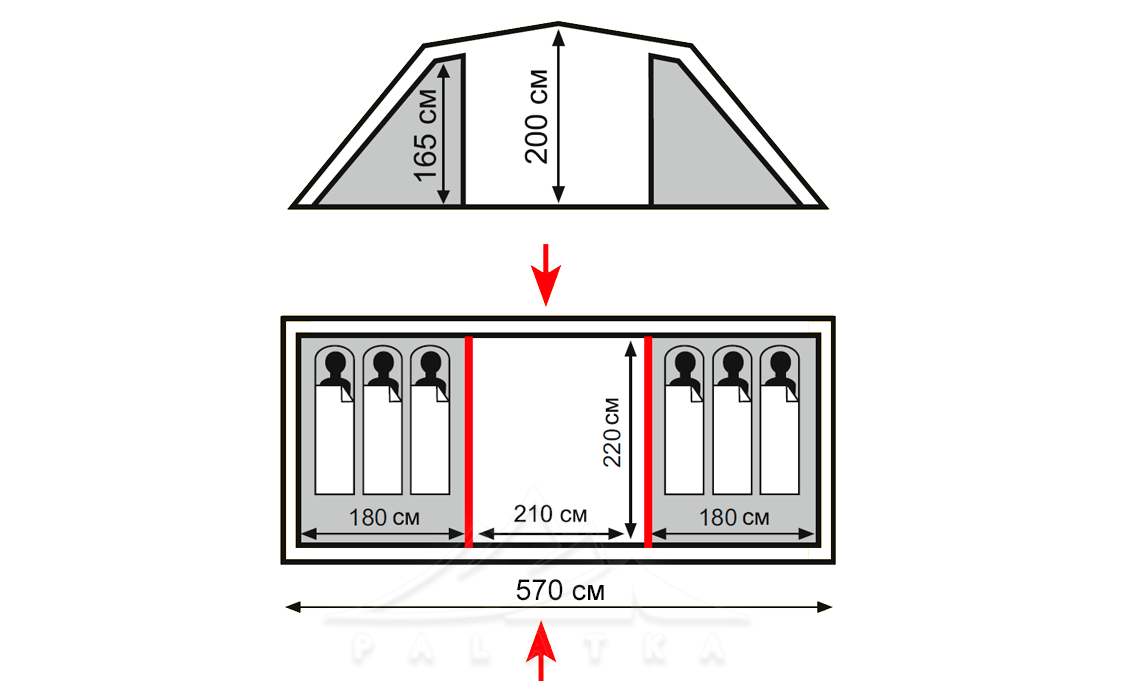 - 2 роздільні внутрішні намети (спальні).