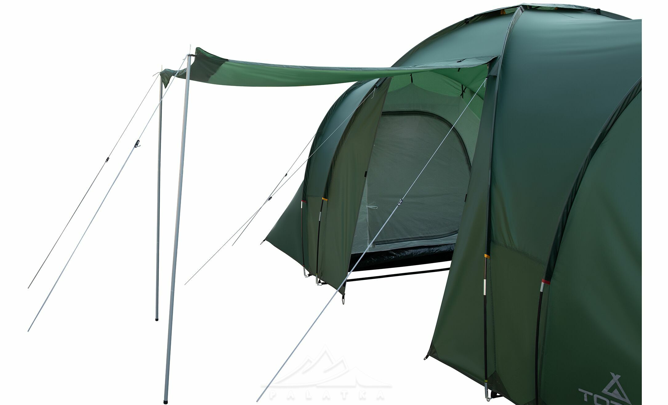 - Високий тамбур дозволяє заходити до намету майже не пригинаючись. Великий простір тамбуру дозволяє розмістити кемпінгові меблі.
