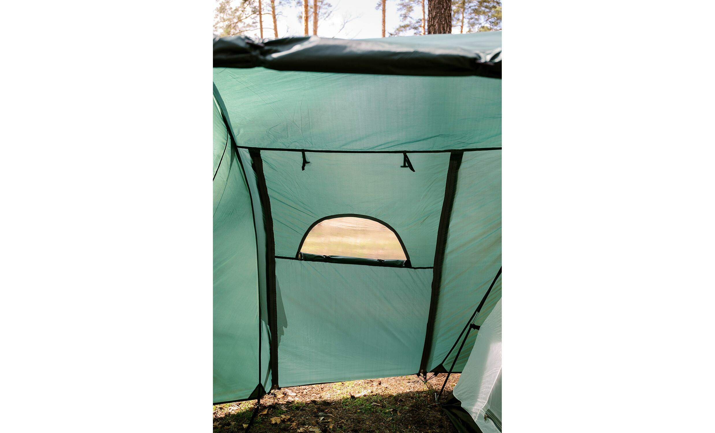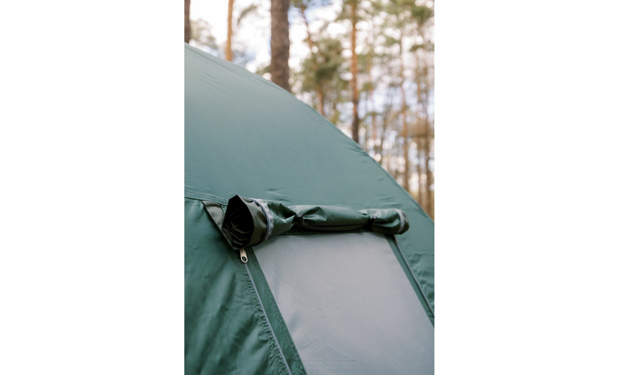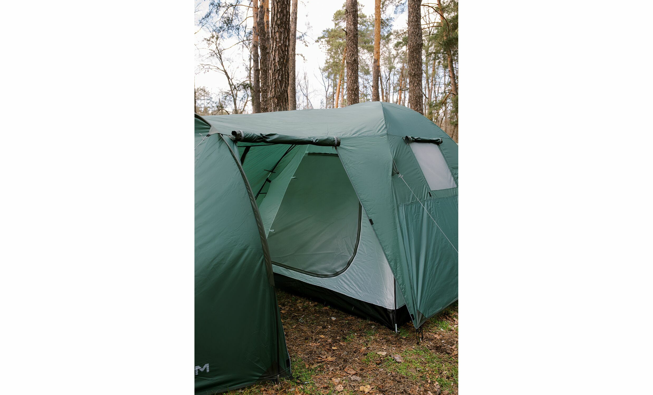 - Високий тамбур дозволяє заходити до намету майже не пригинаючись. Великий простір тамбуру дозволяє розмістити кемпінгові меблі.