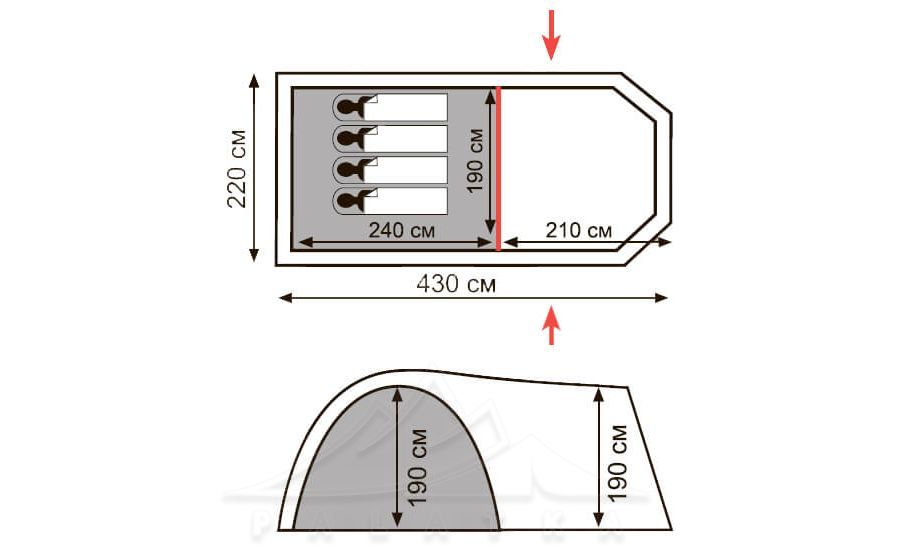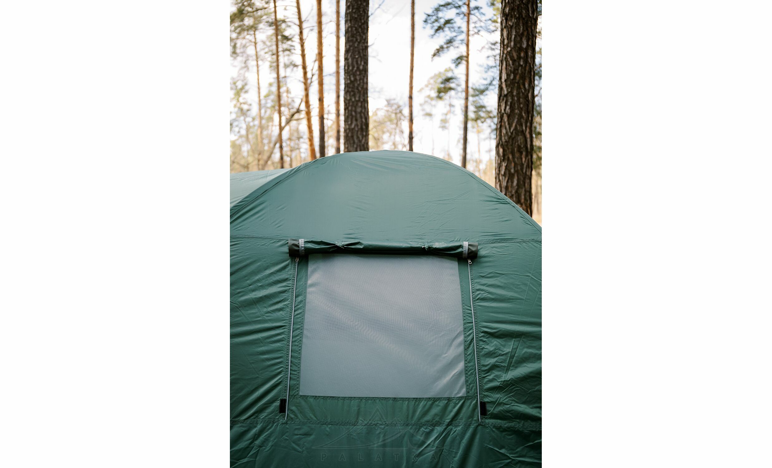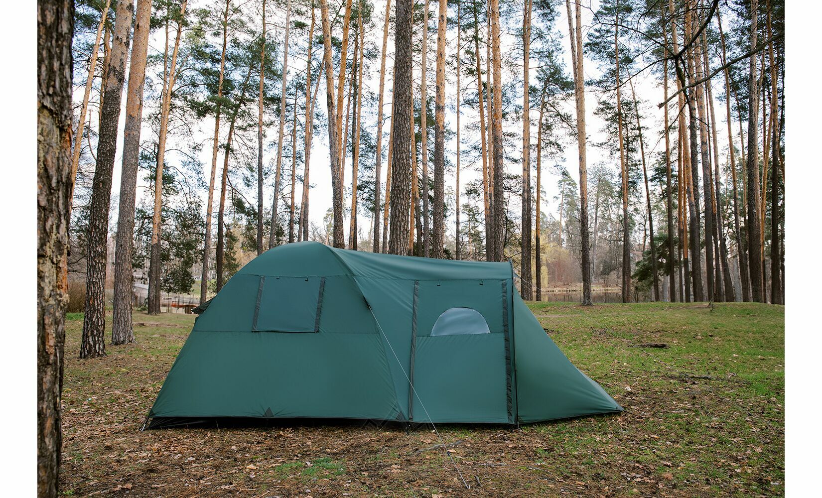 - Високий тамбур дозволяє заходити до намету майже не пригинаючись. Великий простір тамбуру дозволяє розмістити кемпінгові меблі.