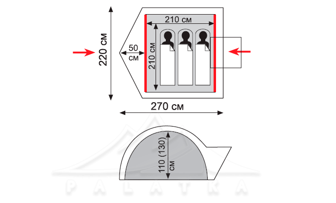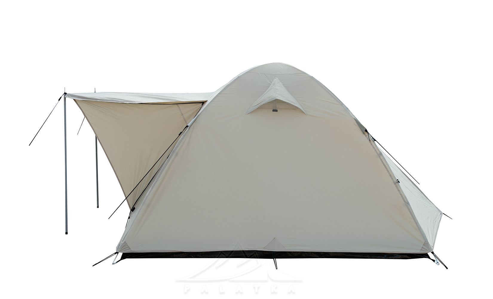 - Окремий вхід з навісом (без тамбуру), який можна використовувати як велике вікно для провітрювання намету.