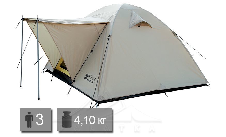 Намет Tramp UTLT-006 Wonder 3 — 3-місний намет для відпочинку на природі. Має 2 входи: з класичним тамбуром та навісом-козирком.