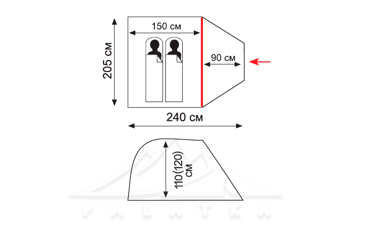 - 2 вентиляційні віконця у тенті з захистом від опадів