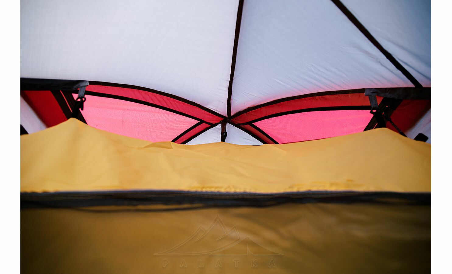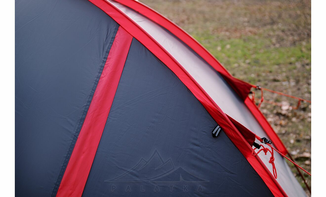 - Сітчасті вентиляційні вставки вгорі на внутрішньому наметі, з блискавками, що дозволяє регулювати вентиляційні віконця зовнішнього намету не виходячи назовні