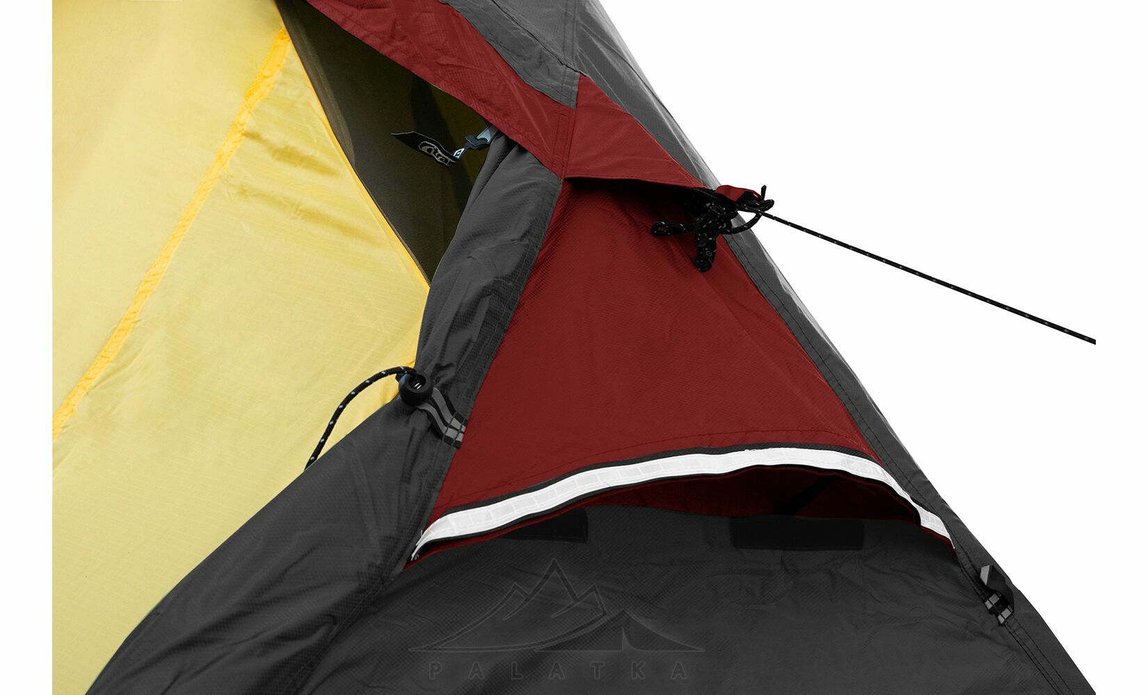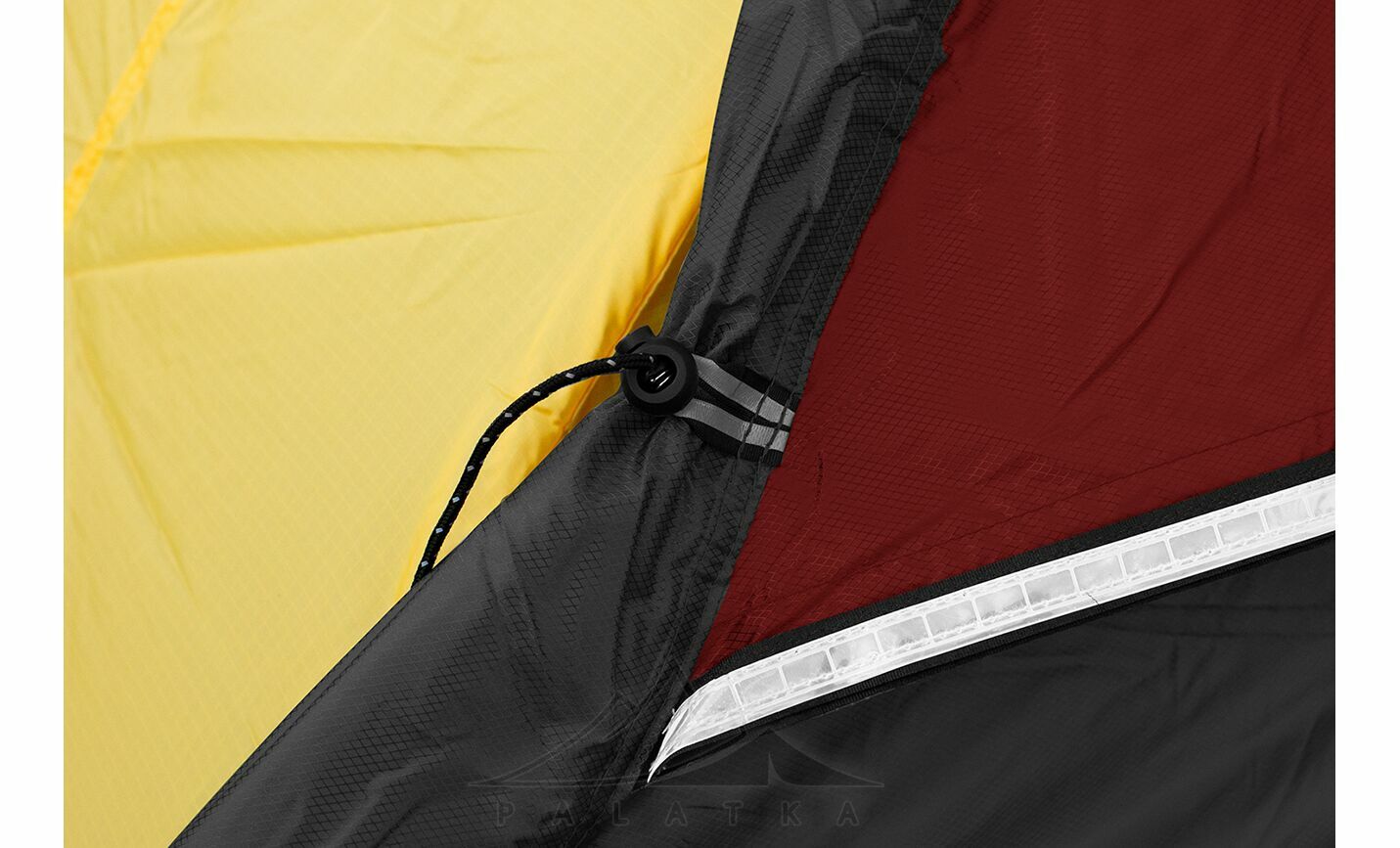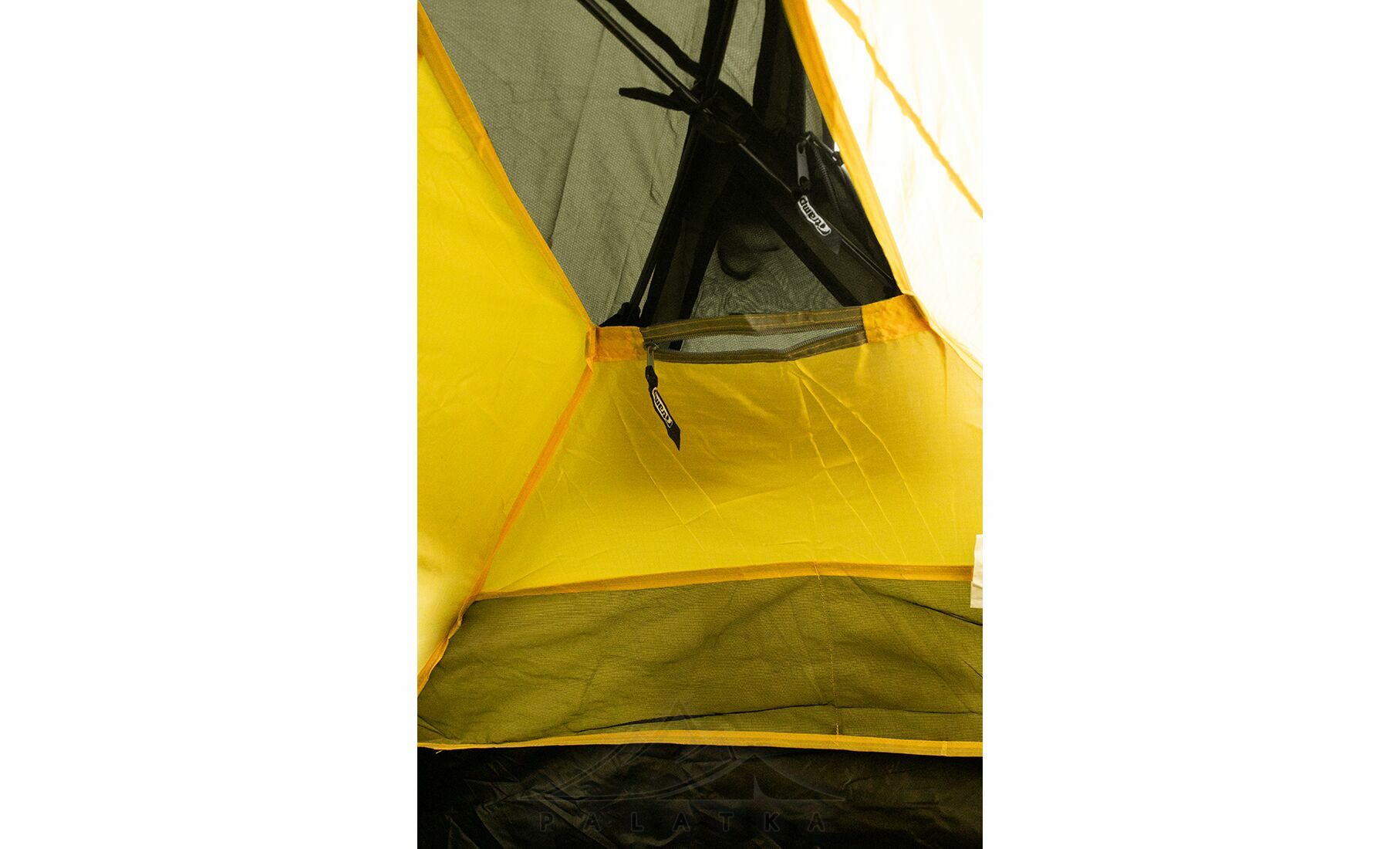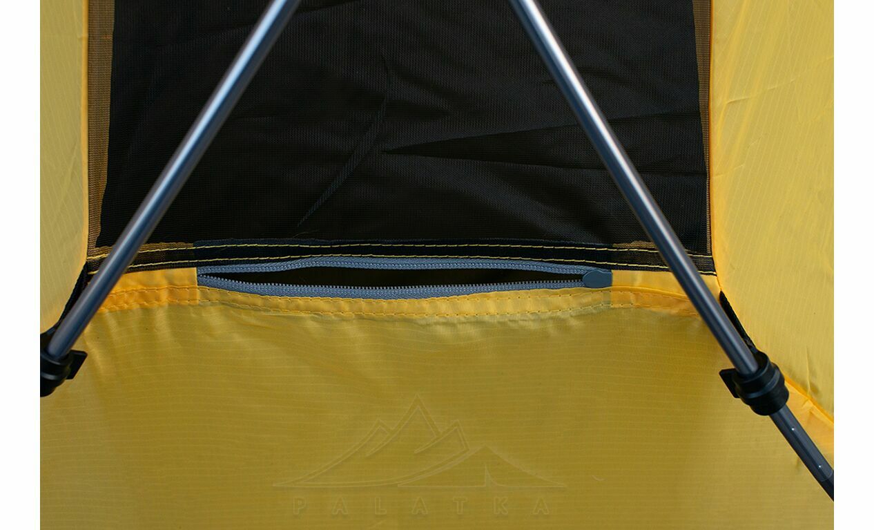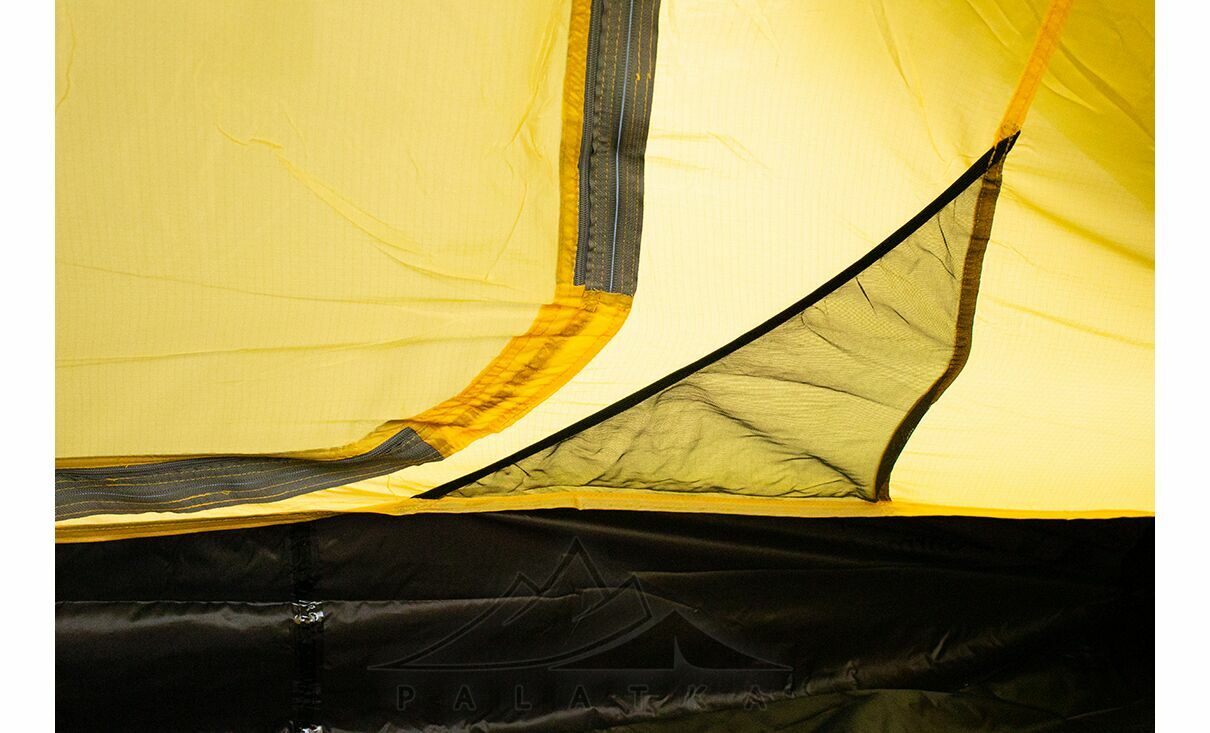 - Сітчасті вентиляційні вставки вгорі на внутрішньому наметі, з блискавками, що дозволяє регулювати вентиляційні віконця зовнішнього намету не виходячи назовні