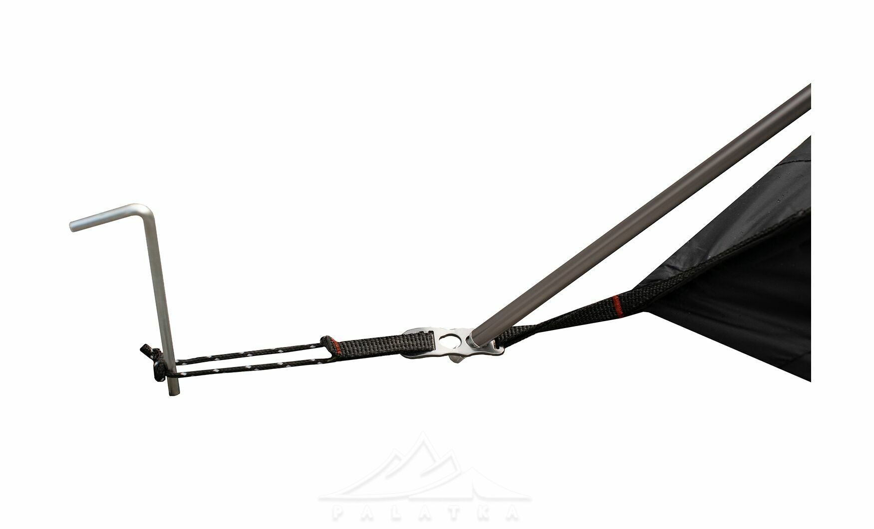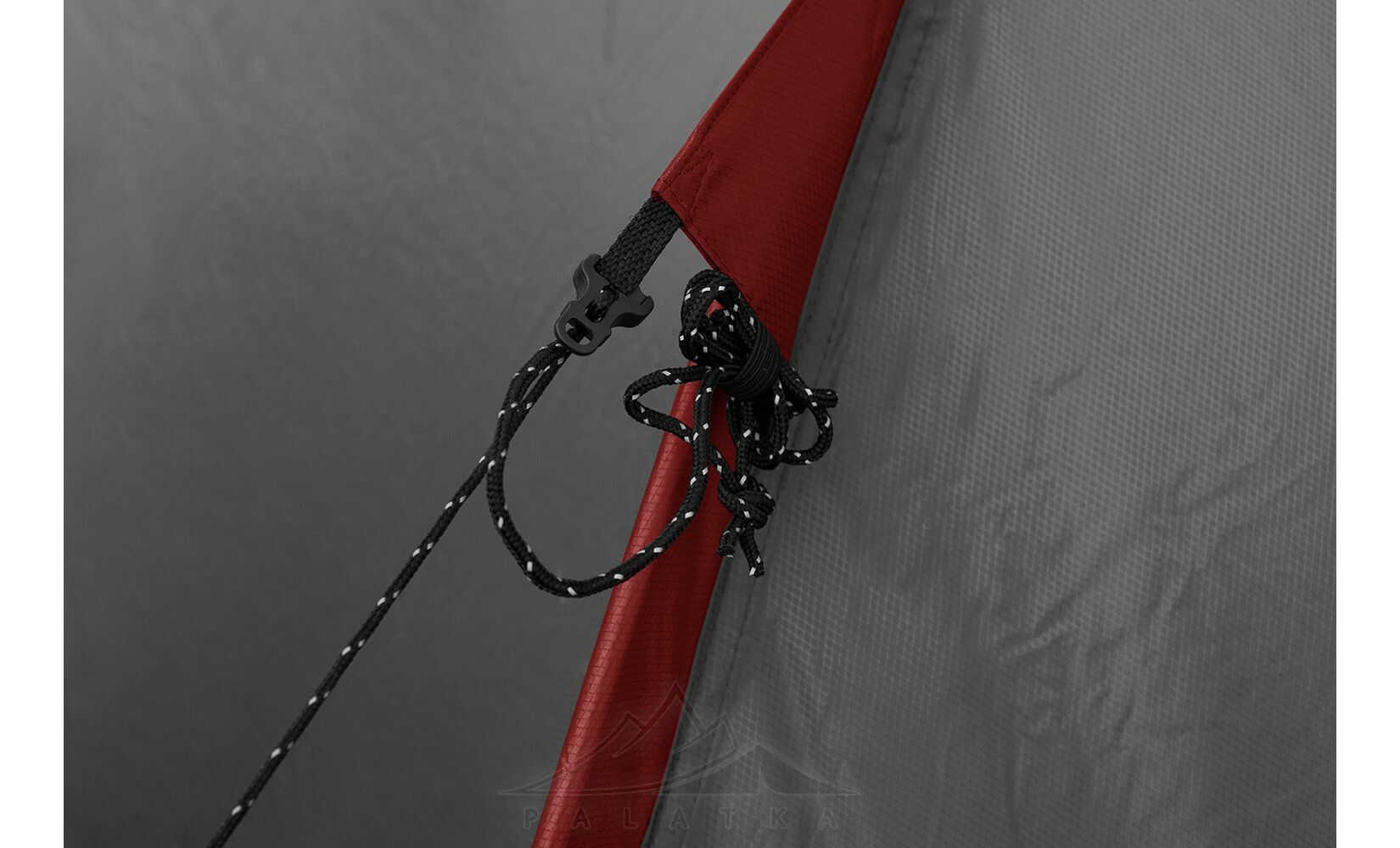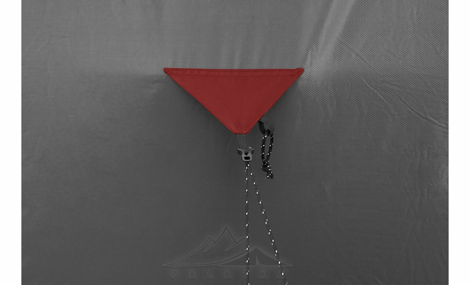 - Штормові відтяжки зі світлоповертаючими елементами для фіксації намету, добре помітні у світлі ліхтаря.
